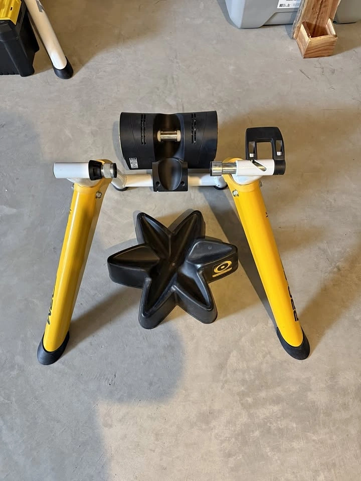 ProForm Le Tour de France indoor bike trainer in great condition. Perfect for cycling training at home during winter or bad weather. Stable, compact and easy to set up. Features: ProForm Le Tour de France bike trainer, Indoor cycling training stand, Foldable legs for easy storage, Includes front wheel riser block, Compatible with road bikes and mountain bikes. Great for cyclists who want to train indoors. Pickup in Mahogany. If the ad is up, it's still available. Open to reasonable offers.
