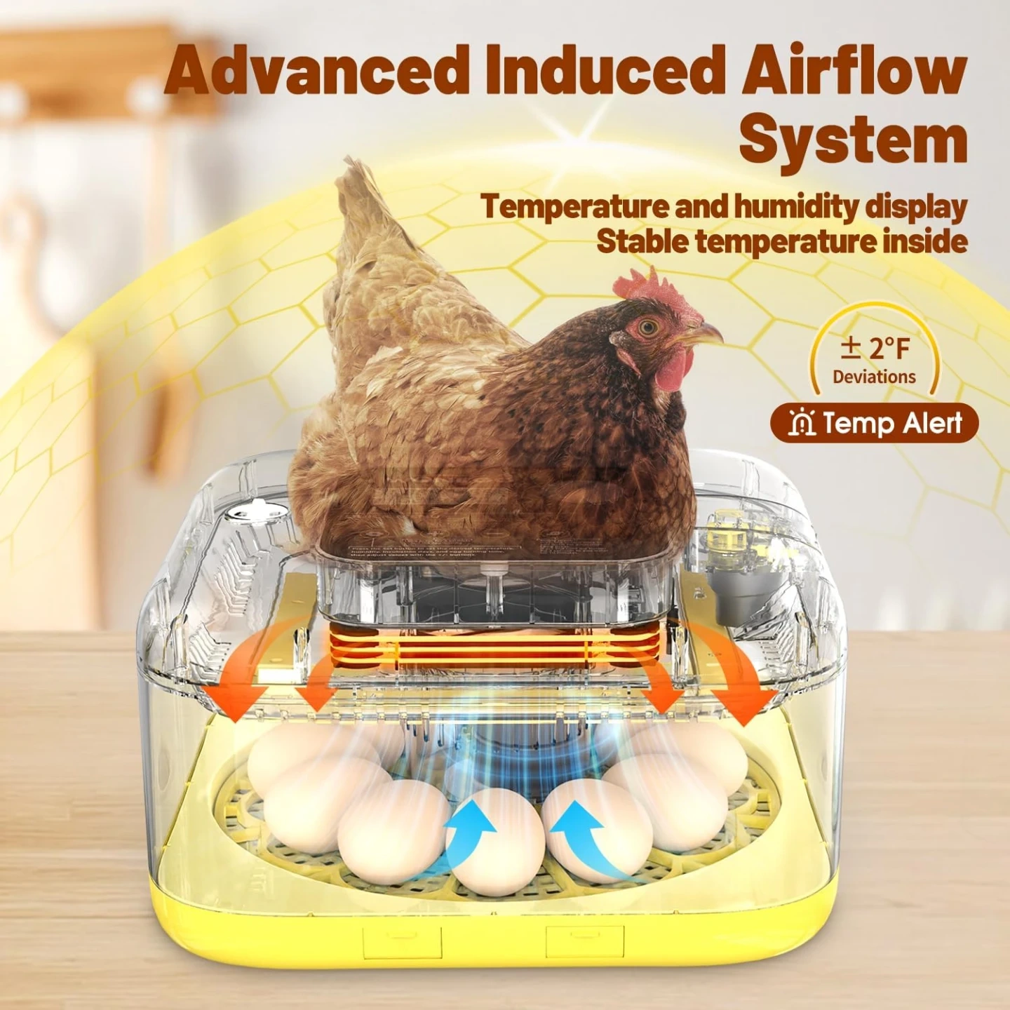 【Smart Alerts & Strobe Warning】- WONEGG incubators for hatching eggs is equipped with high-precision sensors that trigger audible and visual alarms when: Temperature fluctuates by ±2℉ or Humidity deviates by 10%. Ensures prompt intervention for higher hatch rates.