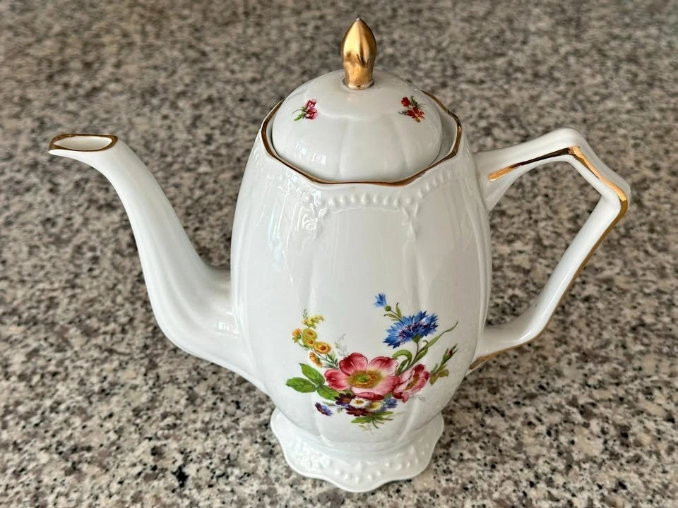 Floral Teapot with Gold Trim