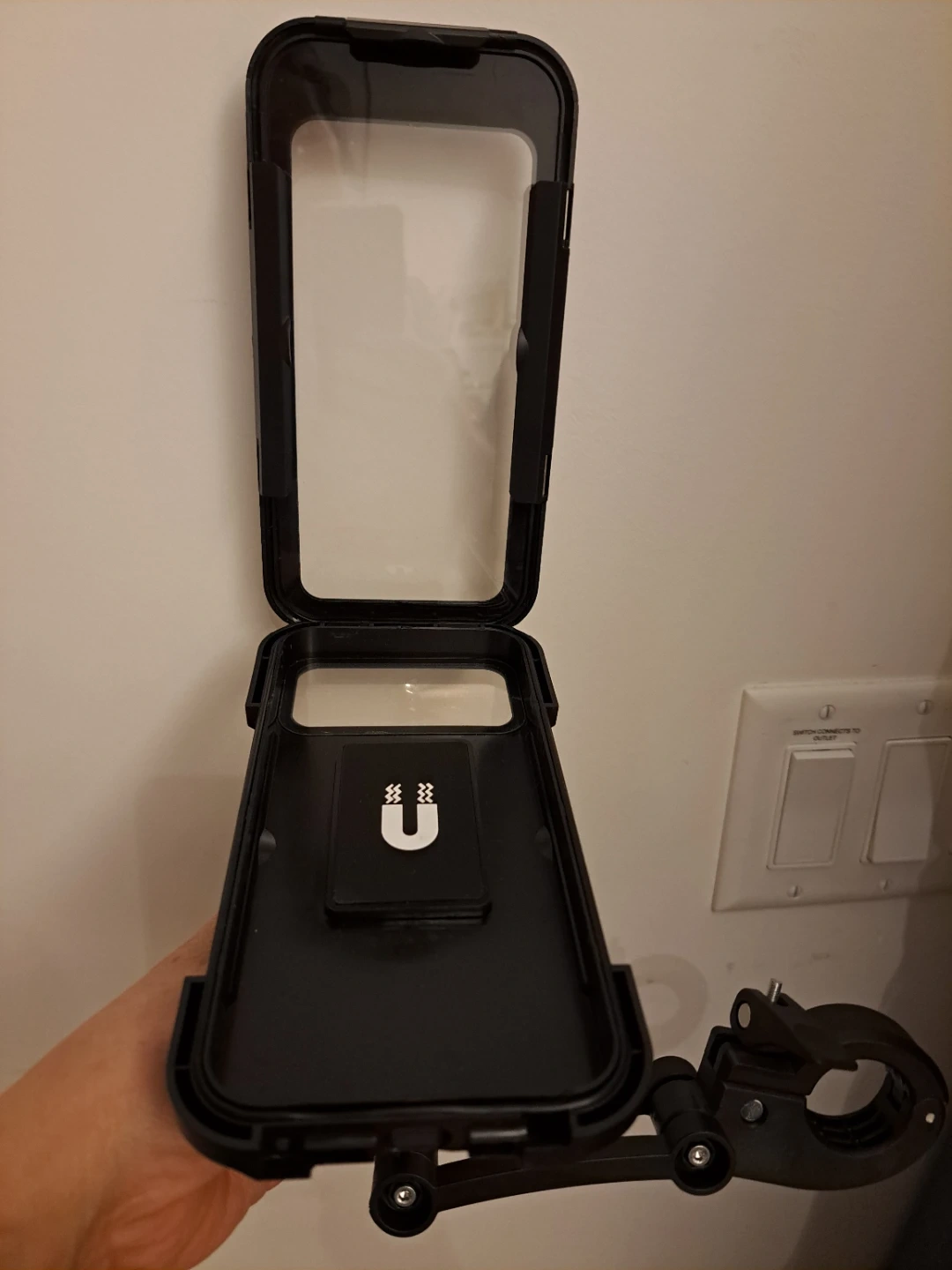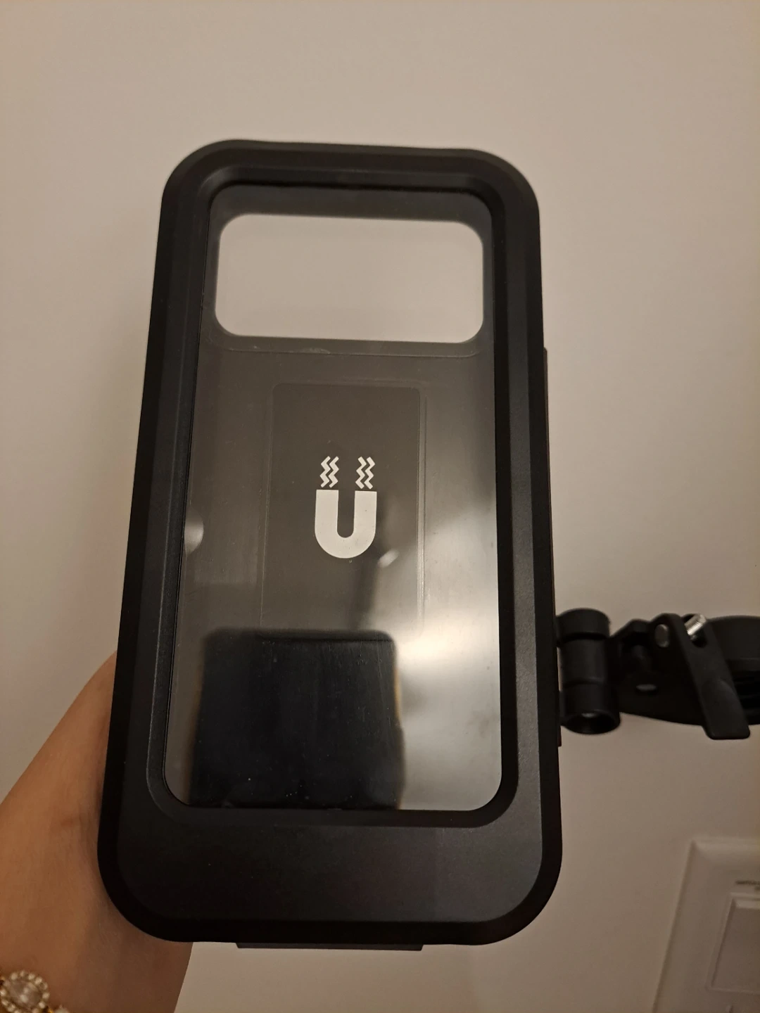 This phone mount offers strong magnetic adsorption and 360° free rotation. It's adjustable to fit handle diameters from 22-28 mm. Suitable for motorcycles and bicycles.