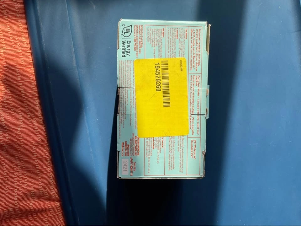Awesome Onn. small rugged speaker. Still in box, never used. Has Bluetooth wireless tech so you can stream music from your phone. IPX7 waterproof, so good for outdoors or by the pool. Up to 10 hours playtime on a single charge. Also has Party Sync Mode, can pair with other Onn. speakers. Comes in grey. 5W RMS output and 3.5mm Aux In.