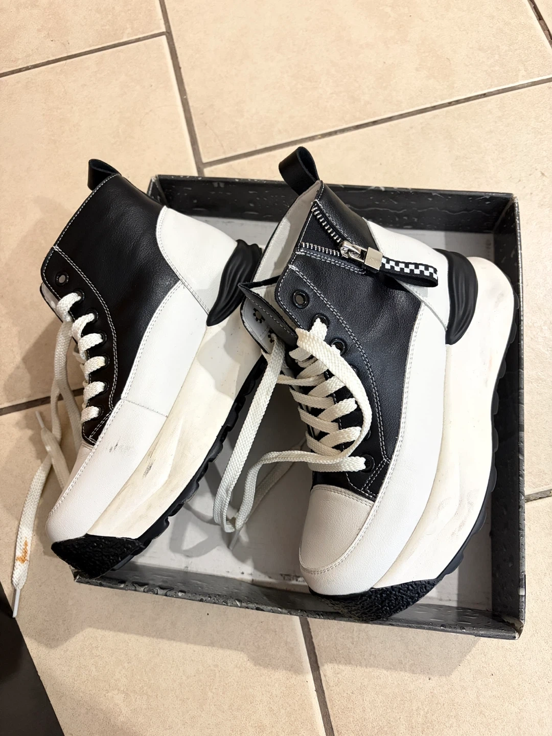 Buy & SellHigh-Top SneakersHigh-Top Sneakers$25High-top sneakers in black and white. Lace-up closure with side zipper detail. Made in China. Size 230ConditionLike newWHERE TO MEETCheck LocationView MapSELLEREmmaSussex Nelson494 reviews1 chats·0 favorites·11 viewsSEND CHAT TO SELLERHi Emma! I’m interested in your listing.Hi Emma! I’m interested in your listing.Get the Karrot app to chatSign In to chat