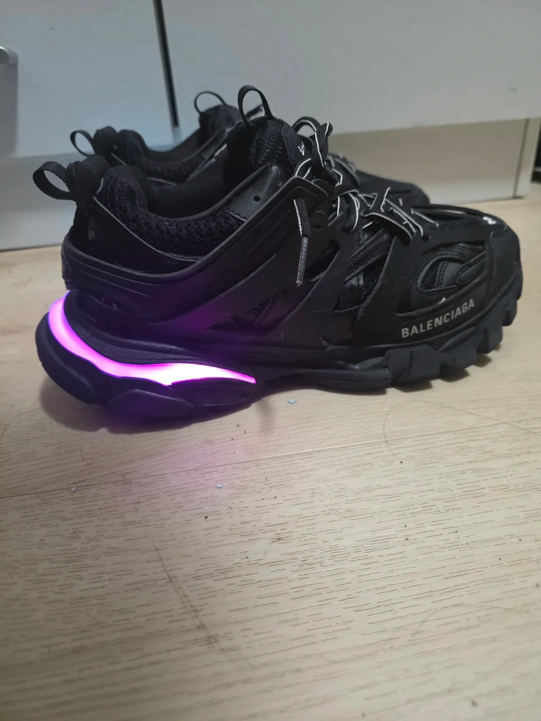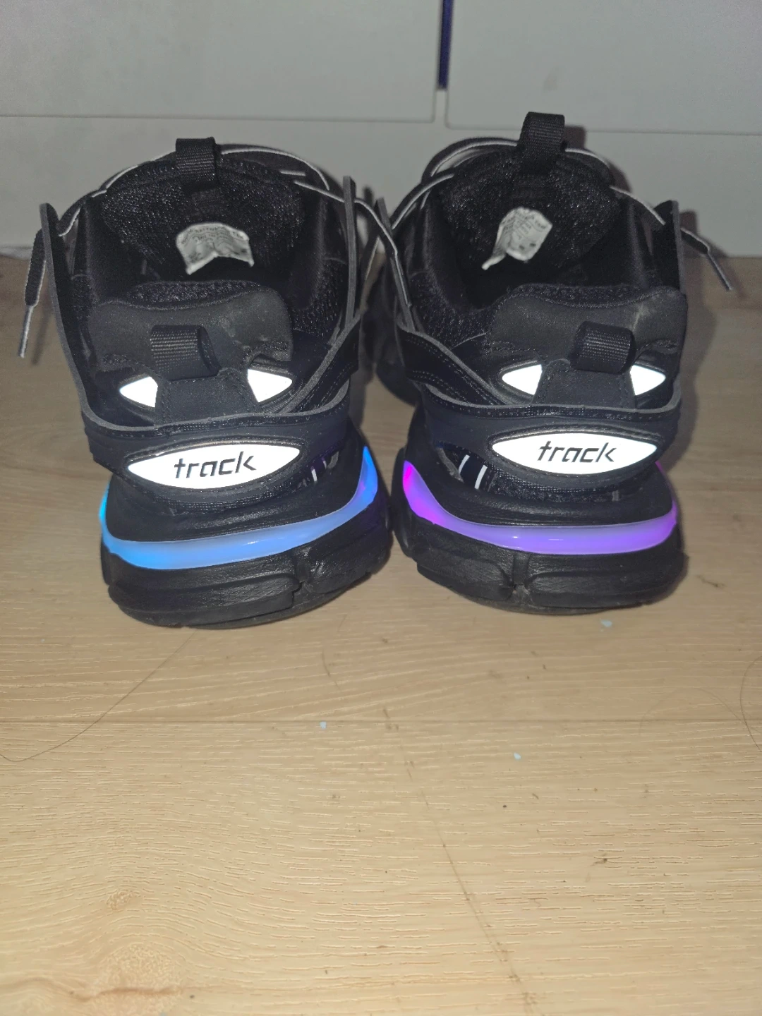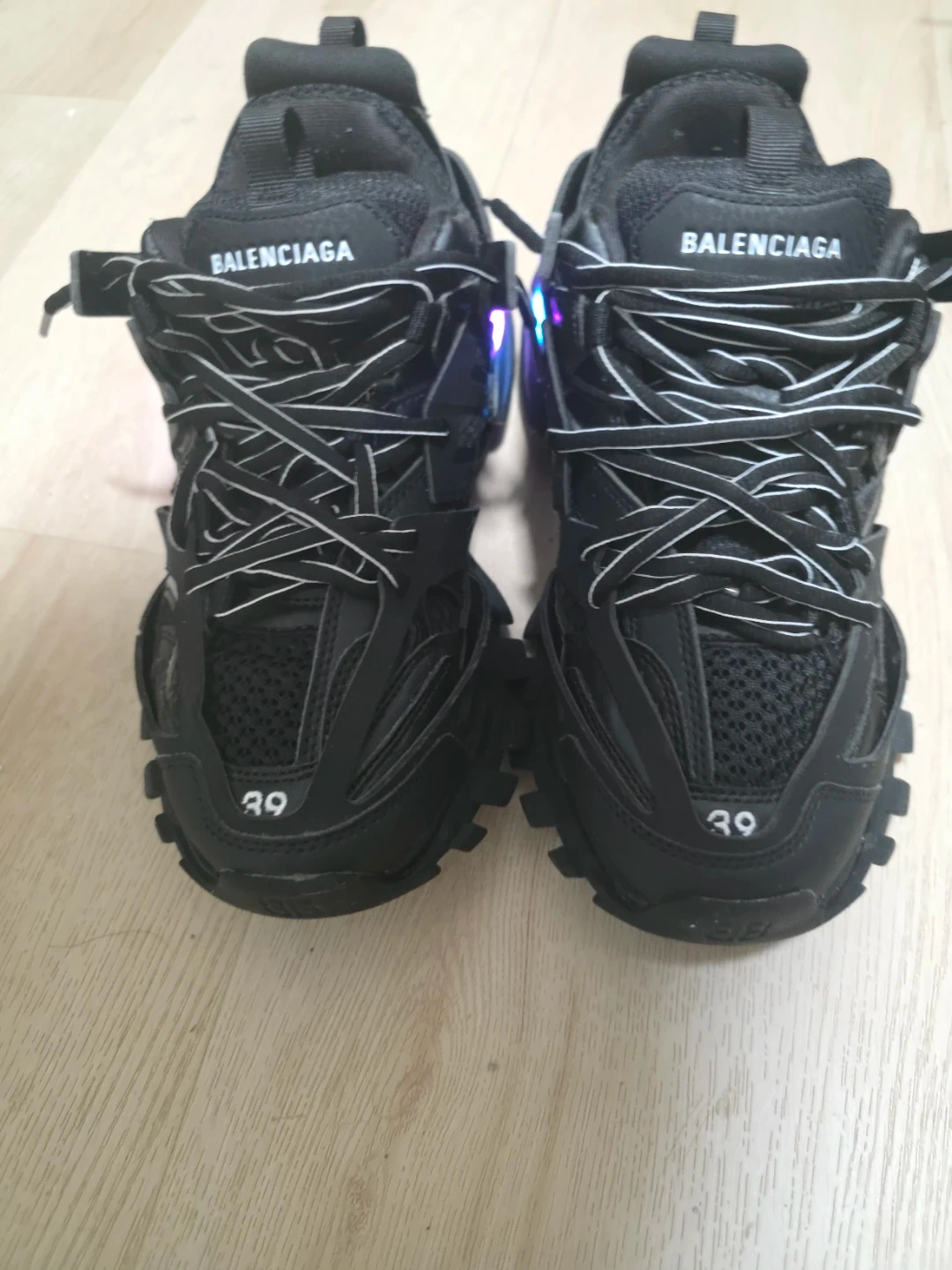 Balenciaga Track sneakers with LED detailing on the sole. Includes original dust bag and extra laces. Size 39. The shoes are new, since I only use them for 5 days only and the box is a little broken, since the delivery drivers threw it very hard And I no want them because I buy the wrong size.