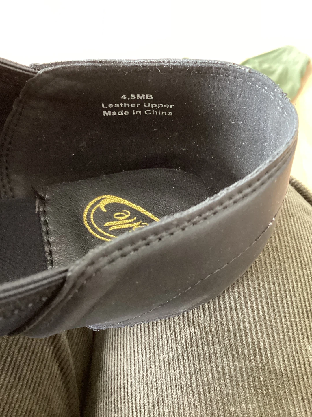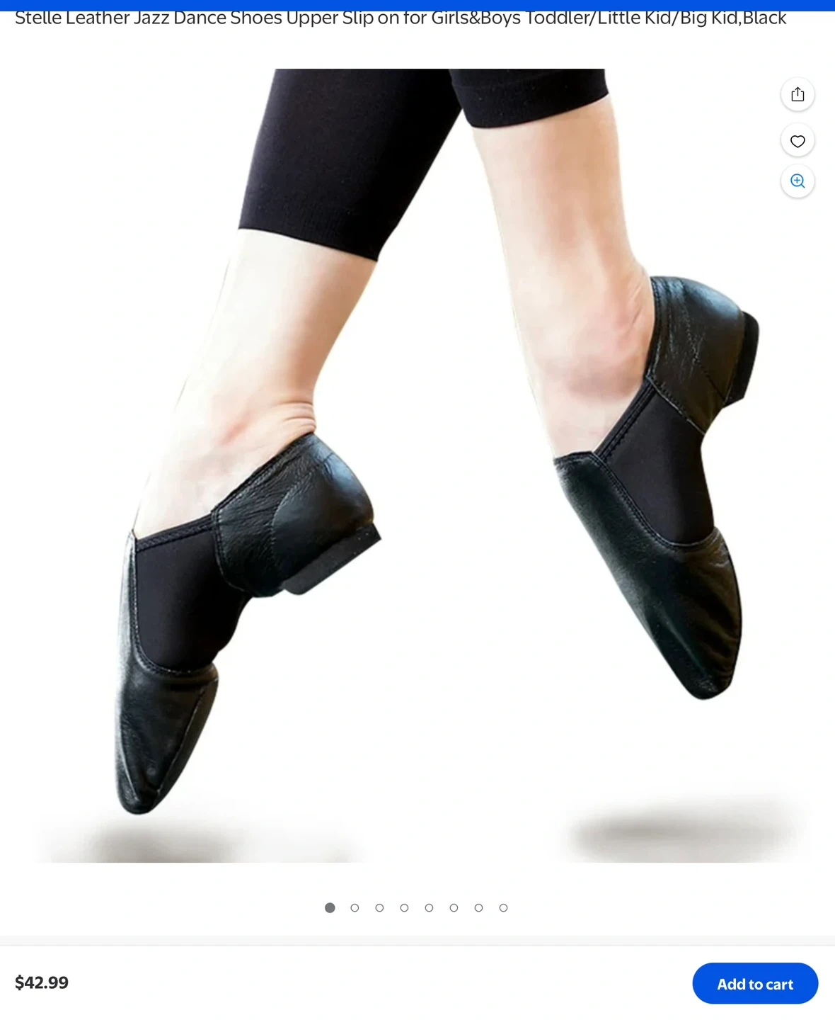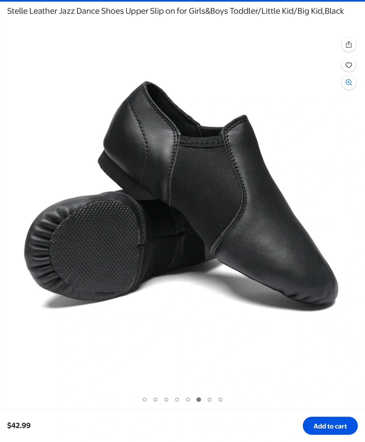 These black jazz dance shoes have a premium leather upper. They're a slip-on style with elastic sides for a snug fit. Size is 4.5 MB. Just didn’t fit sadly.