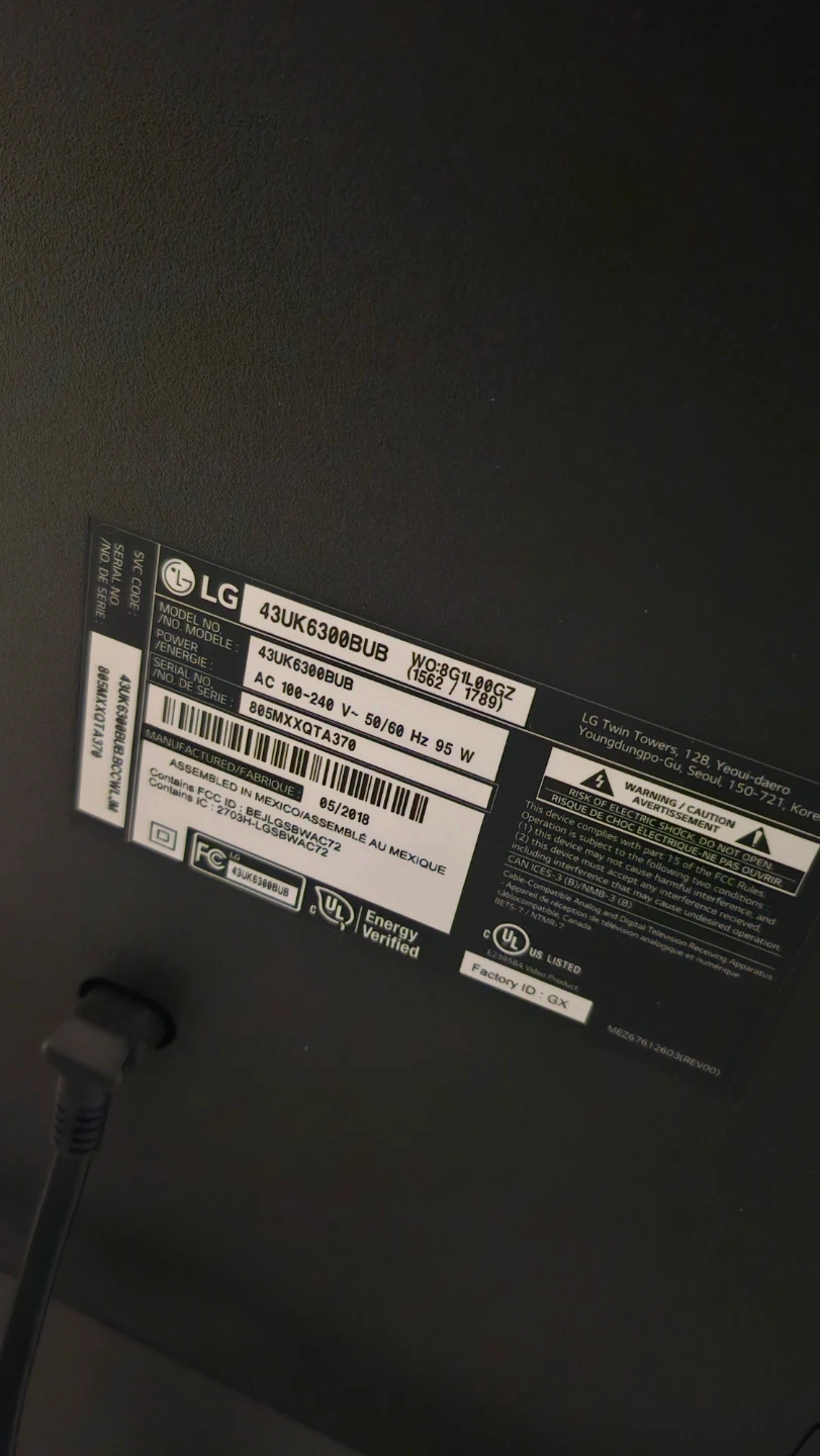 This is an LG 43-inch UHD 4K TV. It features ThinQ AI, a 4K IPS display, and Active HDR. True Color Accuracy. Includes original box. Assembled in Mexico.