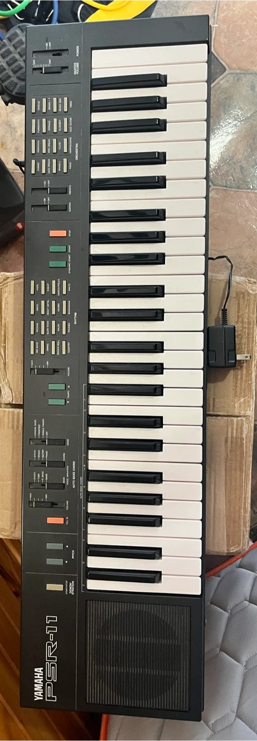 Yamaha PSR-11 portable keyboard with multiple voices and rhythms. Features include auto bass chord and pitch bend. It's great for beginners or for anyone looking for a fun, compact keyboard.