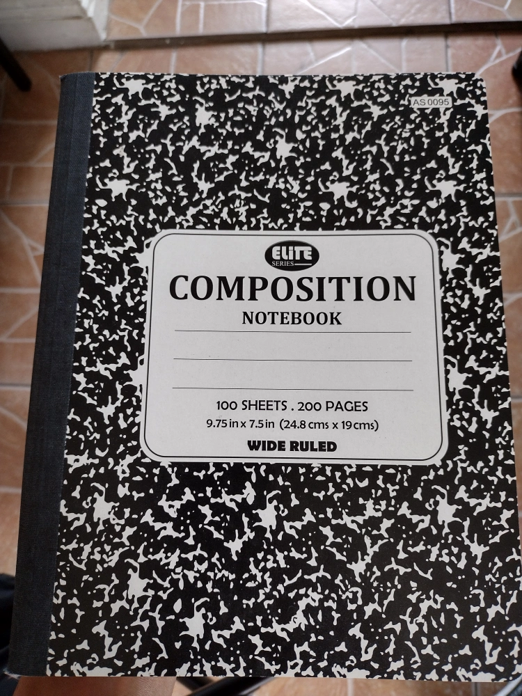 Selling an Elite Series composition notebook! It has 100 sheets (200 pages) and is wide ruled. The notebook measures 9.75 in x 7.5 in (24.8 cms x 19 cms)