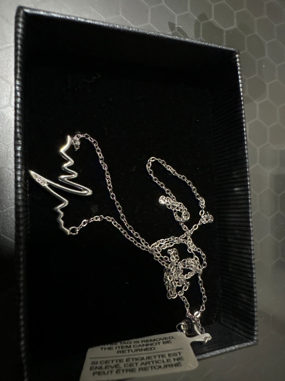 Selling a delicate Sterling silver 925 necklace. It comes in its original box, making it perfect as a gift or a treat for yourself! The design is quite unique and eye-catching.