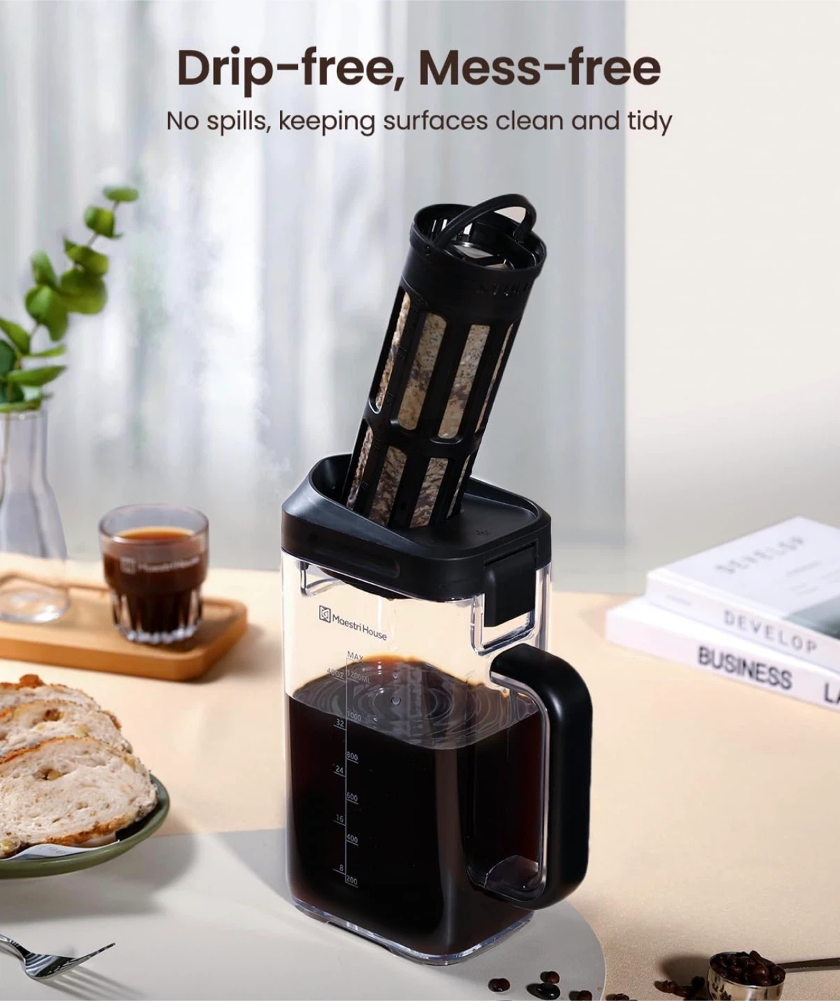 • Convenient Features: Precise scales, removable filter bottom cover, and spill-preventing filter design enhance ease of use and cleaning.