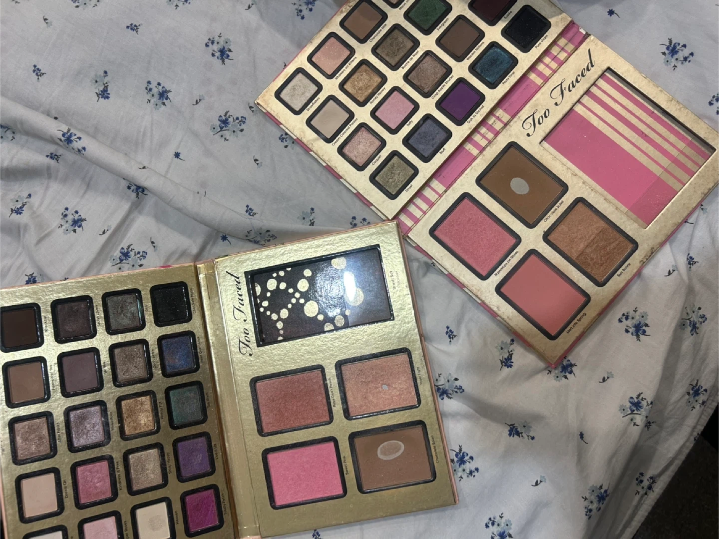 Selling a few eyeshadow palettes! There's a Too Faced "Everything Nice" palette and "A Few of My Favorite Things" palette, as well as a BH Cosmetics "Professional Blush 10 Color Blush Palette" and an "88 Color Palette Tropical Matte Eyeshadow" palette. All have been used, so please see photos for condition. $10 each or $25 for all.