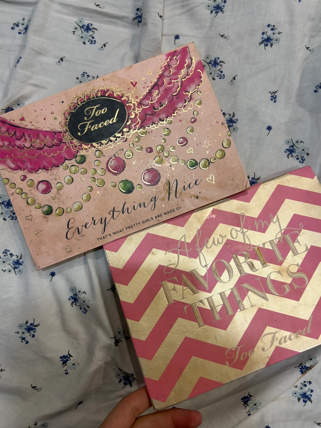 Selling a few eyeshadow palettes! There's a Too Faced "Everything Nice" palette and "A Few of My Favorite Things" palette, as well as a BH Cosmetics "Professional Blush 10 Color Blush Palette" and an "88 Color Palette Tropical Matte Eyeshadow" palette. All have been used, so please see photos for condition. $10 each or $25 for all.