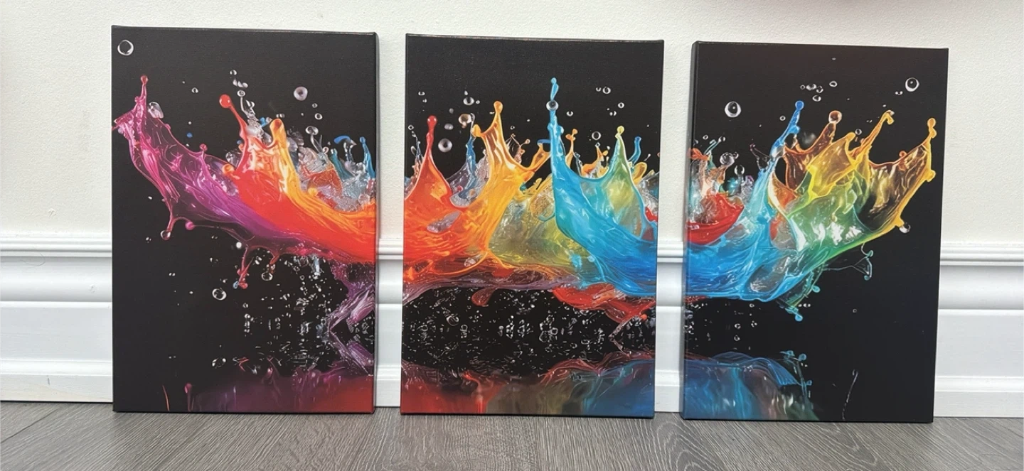 Set of 3 Canvas Wall Art - Colourful Splashes