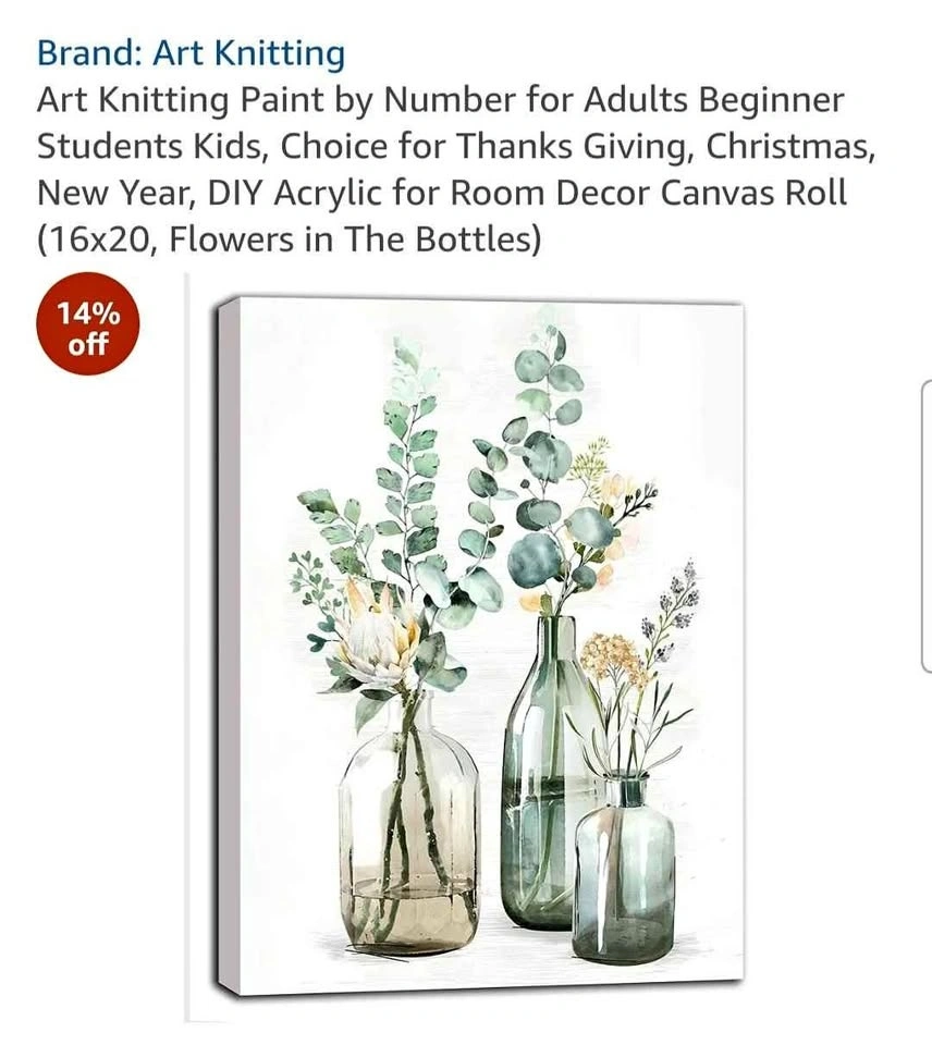 Brand new paint by number kit for adults, beginners, students, and kids. Features 'Flowers in The Bottles' design (16x20 inches). Great for room decor. Perfect for Thanksgiving, Christmas, or New Year gifts. I have 4 sets available, each for $10. Comes from a pet-free and smoke-free home.