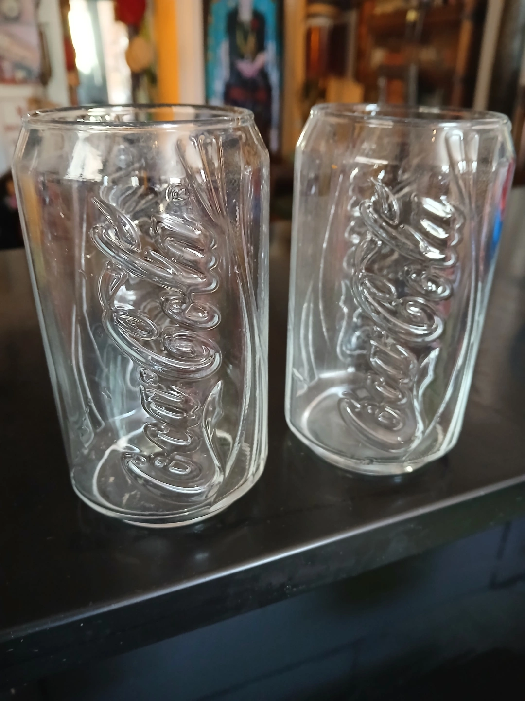 Coca-Cola glasses. Shaped like soda cans. Great for collectors or casual use. Clear glass. 7$ for the pair