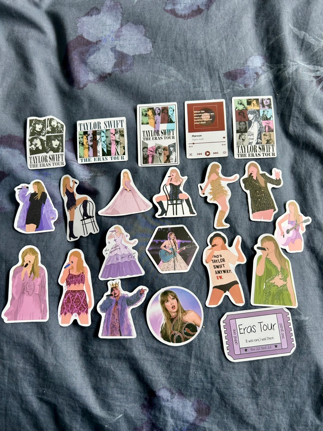 This sticker set features Taylor Swift from The Eras Tour. It includes various designs and a ticket stub. Free with another trade.