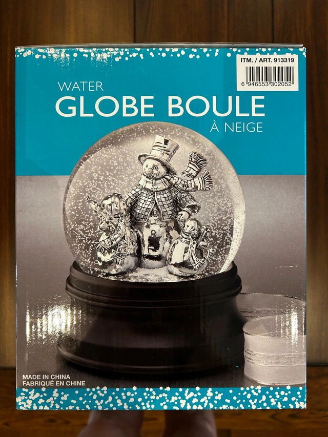 NEW - GIFTABLE never been opened Add a touch of winter wonderland to your home with this brand new water globe featuring snowmen, complete with blower and LED lights! This charming snow globe creates a festive atmosphere with its swirling snow and cheerful illumination. * Blower Circulates Snow Inside the Globe * LED Lights * Requires 3 AA batteries (not included) This snow globe would make a fantastic addition to your holiday decor! If the ad is up, it's available!
