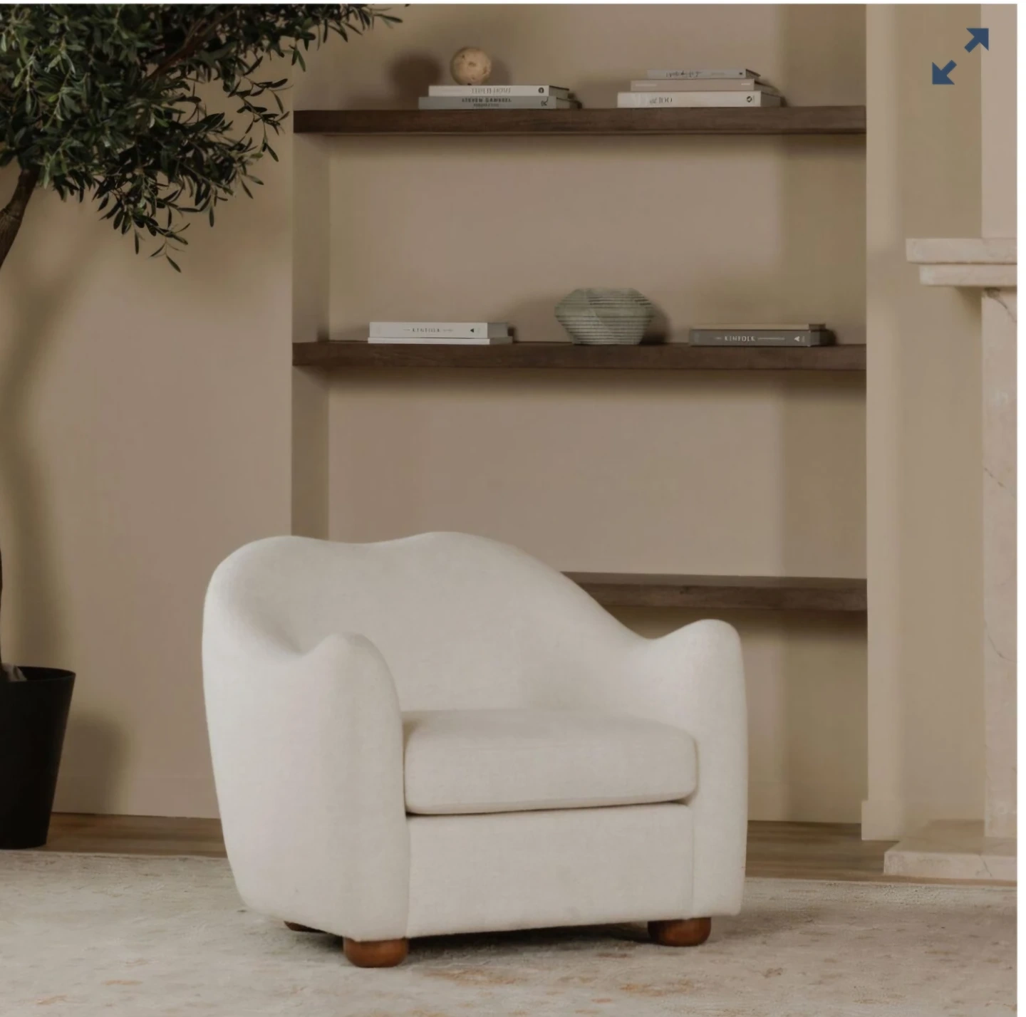This is a Moe's Bria accent chair in oatmeal. It features a boucle upholstery and wooden legs. This chair would fit well in a living room or bedroom.