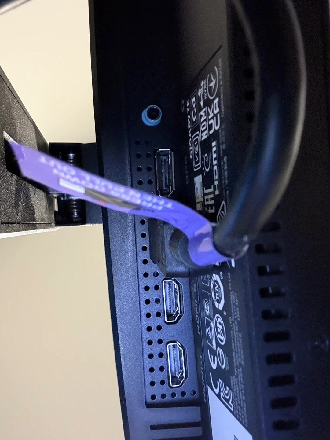 This is a Gigabyte G34WQC A curved LCD monitor. It has an input rating of 100-240V, 50/60Hz, 2.0A. It features multiple HDMI ports for connectivity. Perfect for immersive gaming and media viewing!