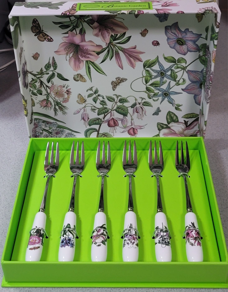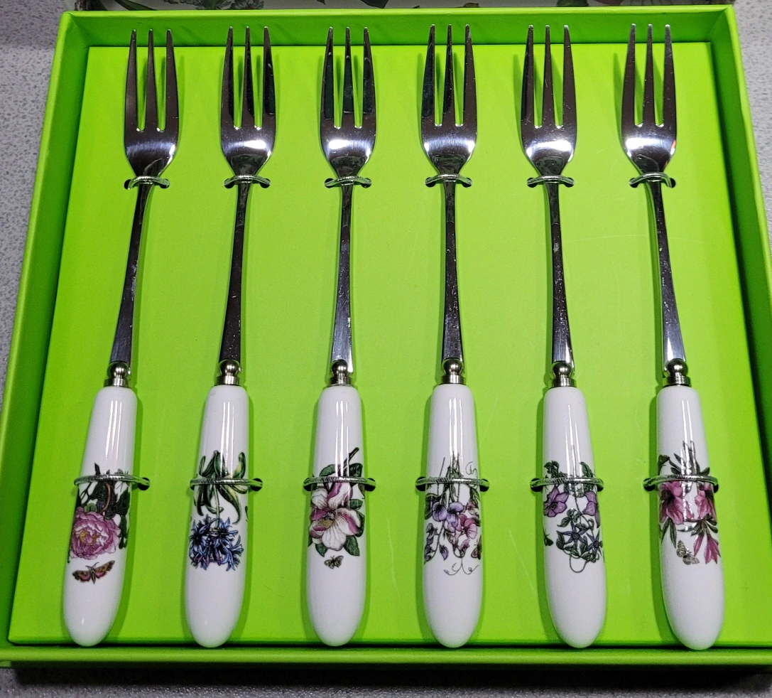-Brand New in Box Set of 6 Portmeirion Botanic Garden pastry forks (British classic)