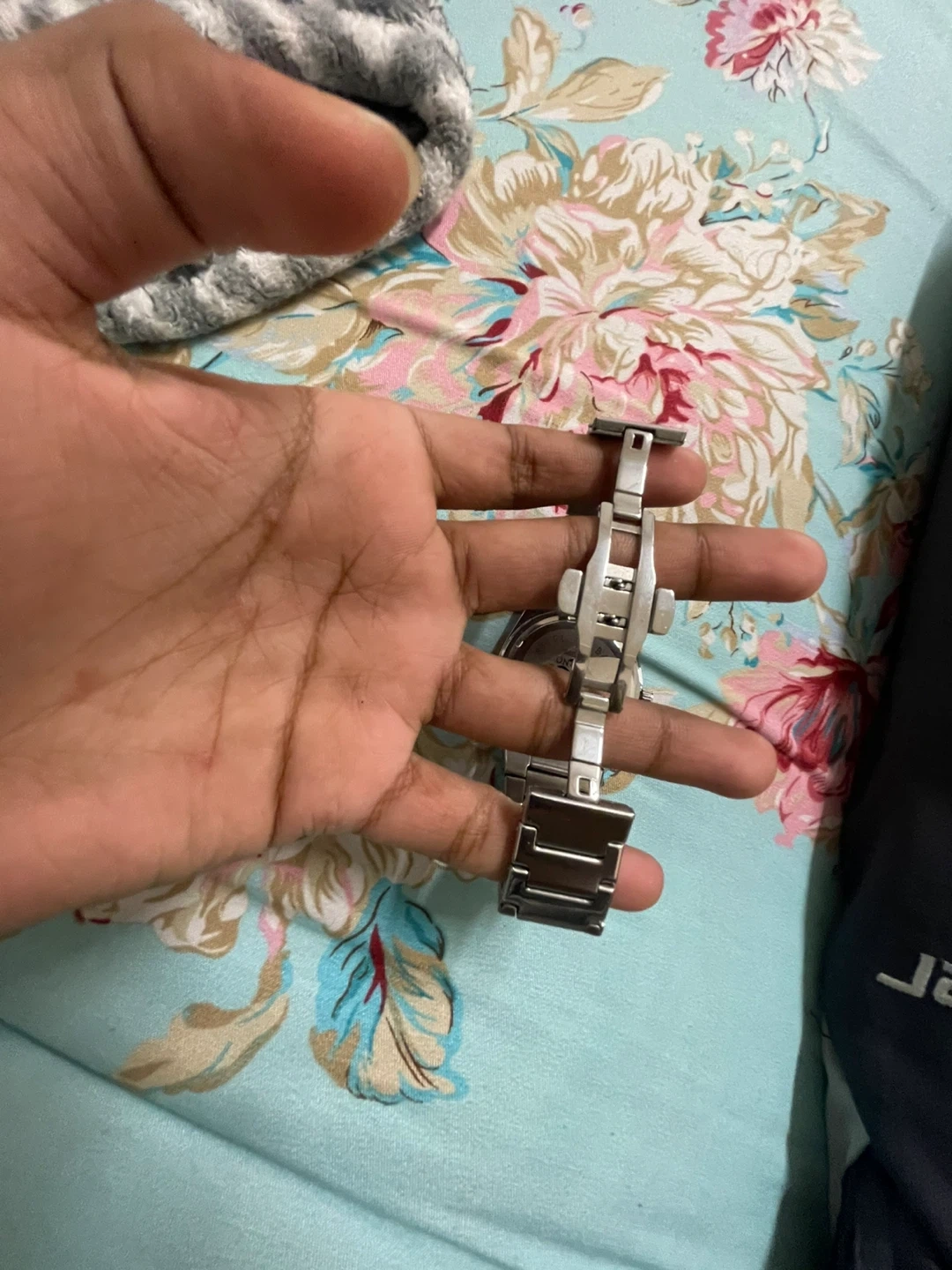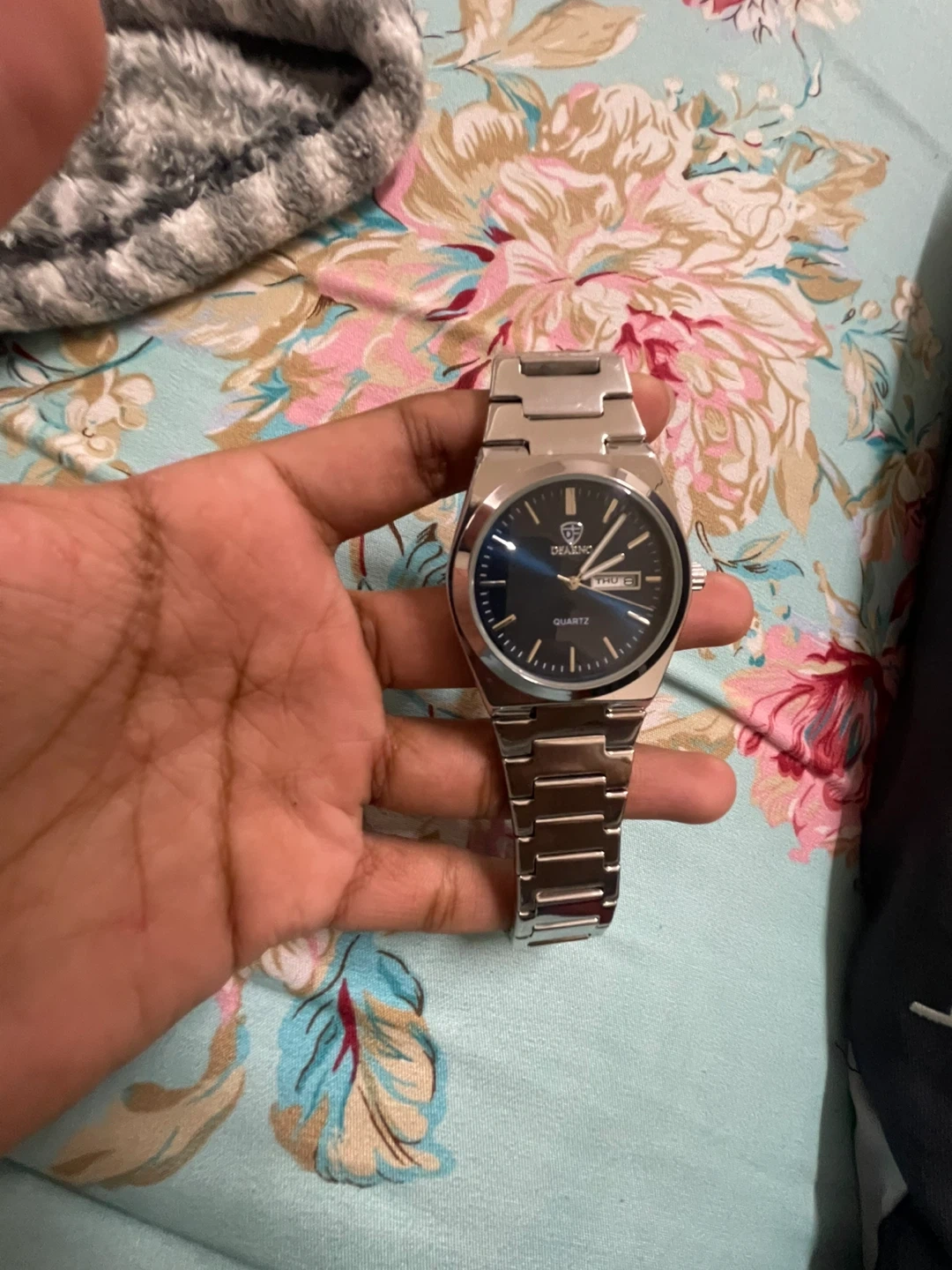 Selling a DEARNO quartz watch in silver! The watch has a blue face and a stainless steel band. It's in great condition and ready for a new wrist!