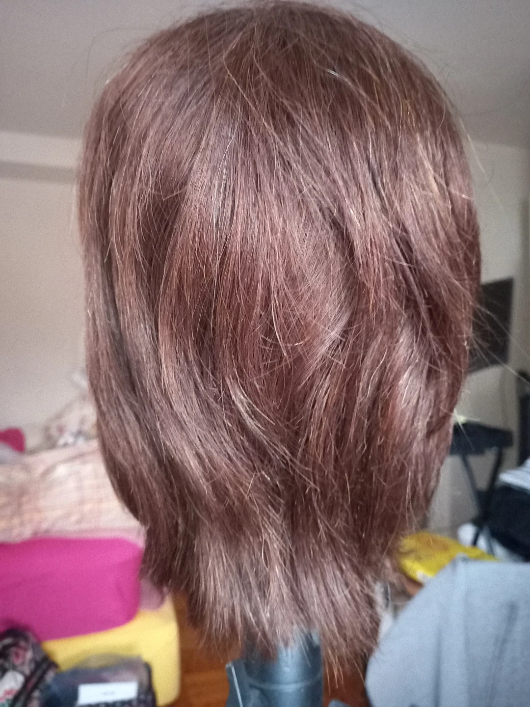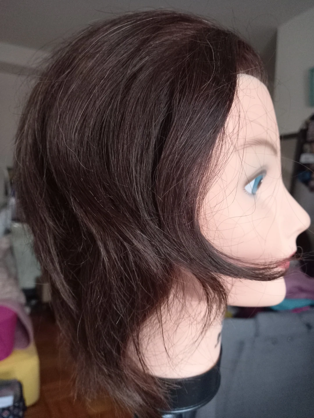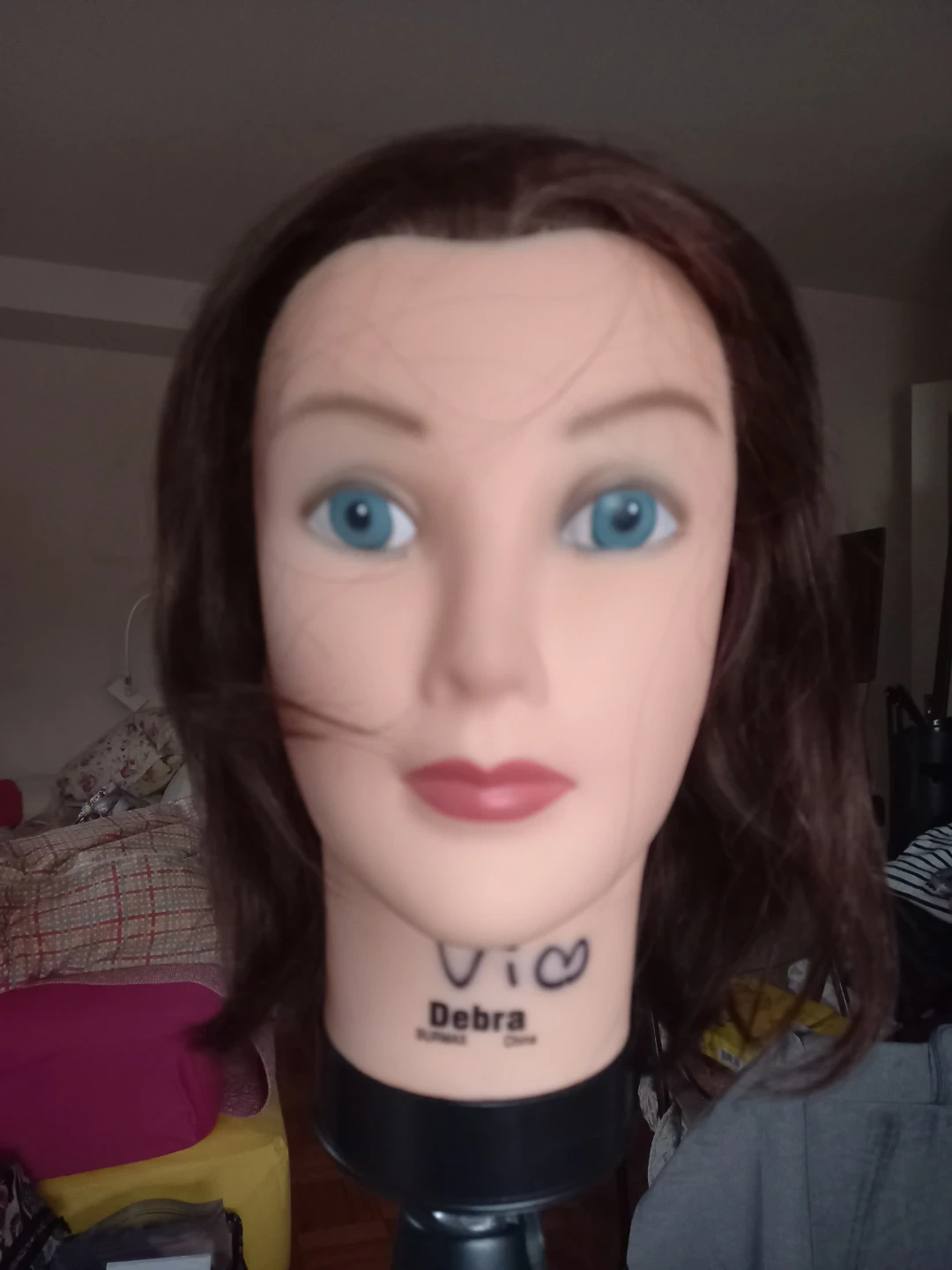 Selling a Debra mannequin head with brown hair. This head is perfect for displaying wigs or practicing styling techniques. It's made of durable plastic and has a realistic facial structure. A great tool for stylists and wig enthusiasts!
