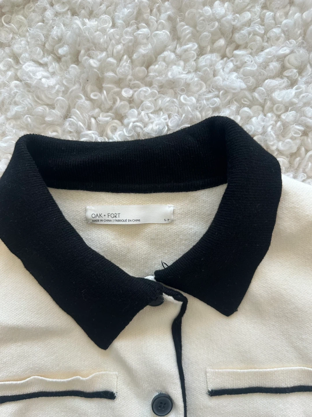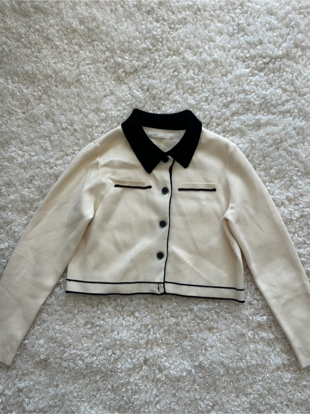 OAK + FORT Cream & Black Collared Cardigan - Size S