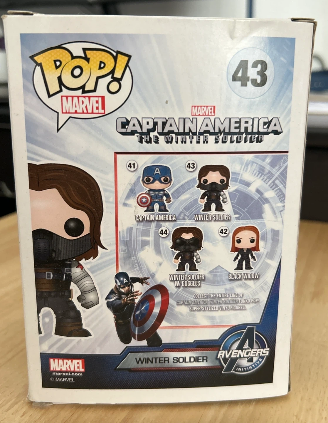 This is a Funko Pop! vinyl bobblehead figure of the Winter Soldier from Marvel's Captain America: The Winter Soldier. It's part of the Pop! Marvel series and is number 43. The item is in its original box.
