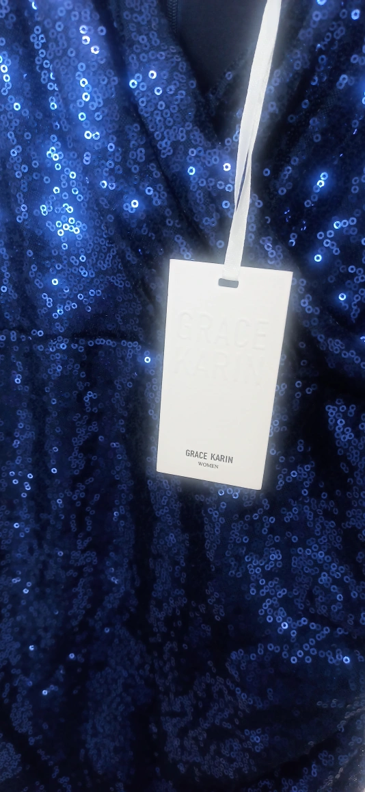 New GRACE KARIN Women's Sexy Sequin Sparkly Gitter Bodycon Dress Spaghetti Straps Wrap V-Neck Ruched Party Club Dress.size Large