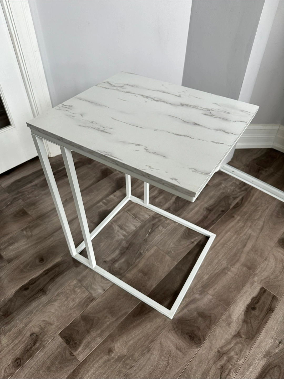 White and Marble Accent Side Table