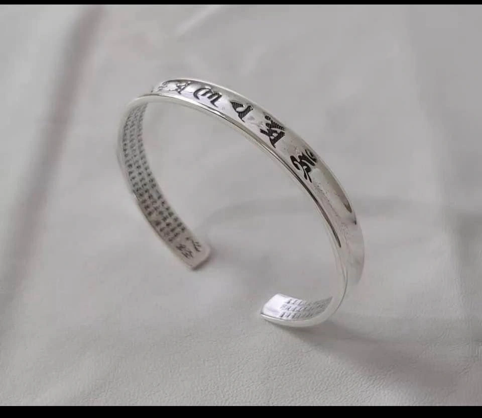 Sterling silver cuff bangle/bracelet hindu mantra amulet