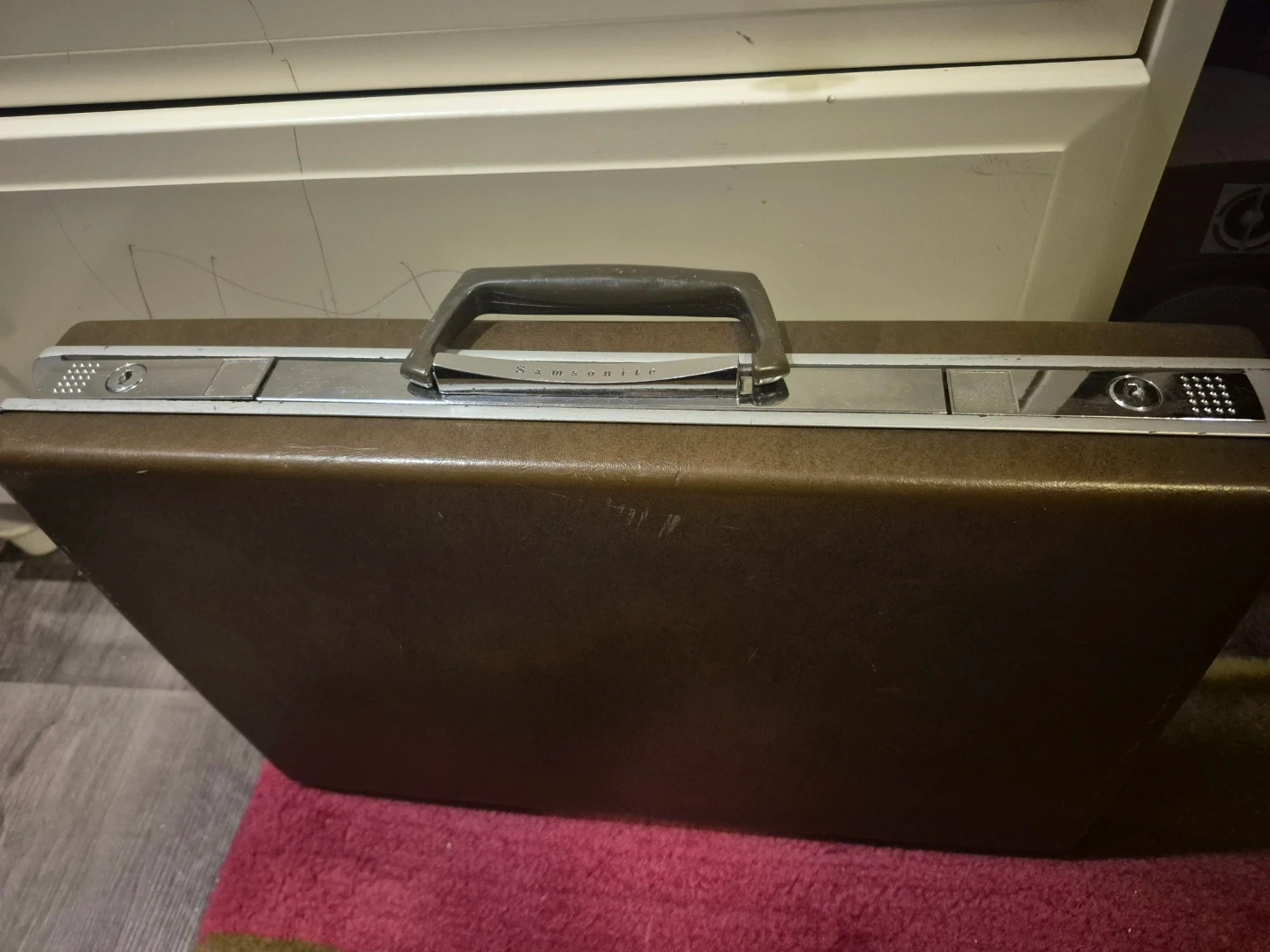 Buy & SellSamsonite BriefcaseSamsonite Briefcase$24Classic brown Samsonite briefcase. It's a vintage piece with a metal handle and clasps. Great for business trips or as a prop!ConditionGoodBrandSamsoniteWHERE TO MEETCheck LocationView MapSELLERverifiedMaryKelvin1296 reviews0 chats·0 favorites·10 viewsSEND CHAT TO SELLERHi Mary! I’m interested in your listing.Hi Mary! I’m interested in your listing.Get the Karrot app to chatSign In to chat