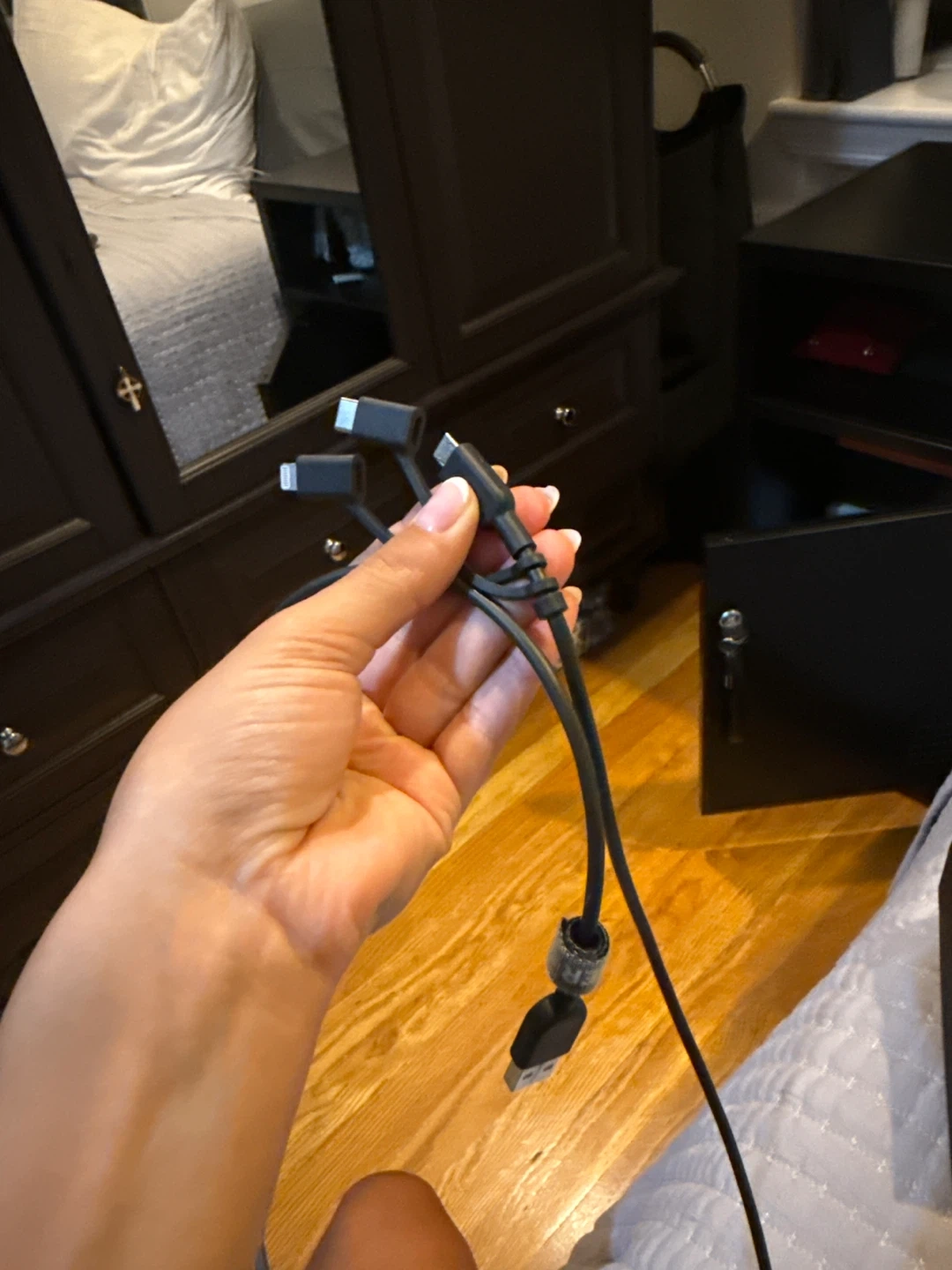 Selling a 3-in-1 USB charging cable! It has connectors for USB-C, Micro USB, and Lightning, so it's super versatile for charging different devices