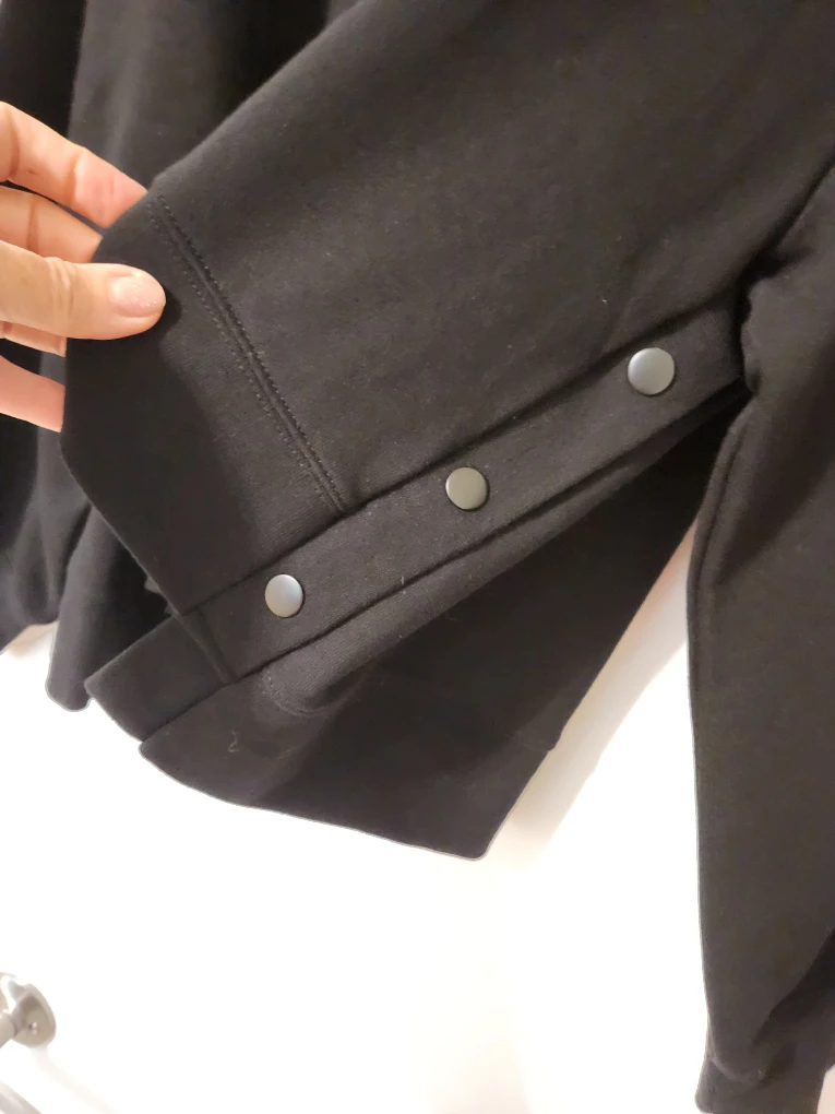 Cozy black sweatshirt featuring a cute sequined dog design! It's a size L/G and has some stylish button details on the sleeves. Originally bought for $69!