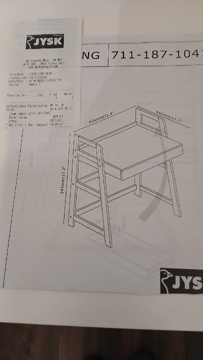 60Selling a Jysk Hensins desk in white. It's in great shape and ready for a new home! The dimensions are 836mm/32.9" wide and 450mm/17.7" deep. Originally bought for $89.59.
