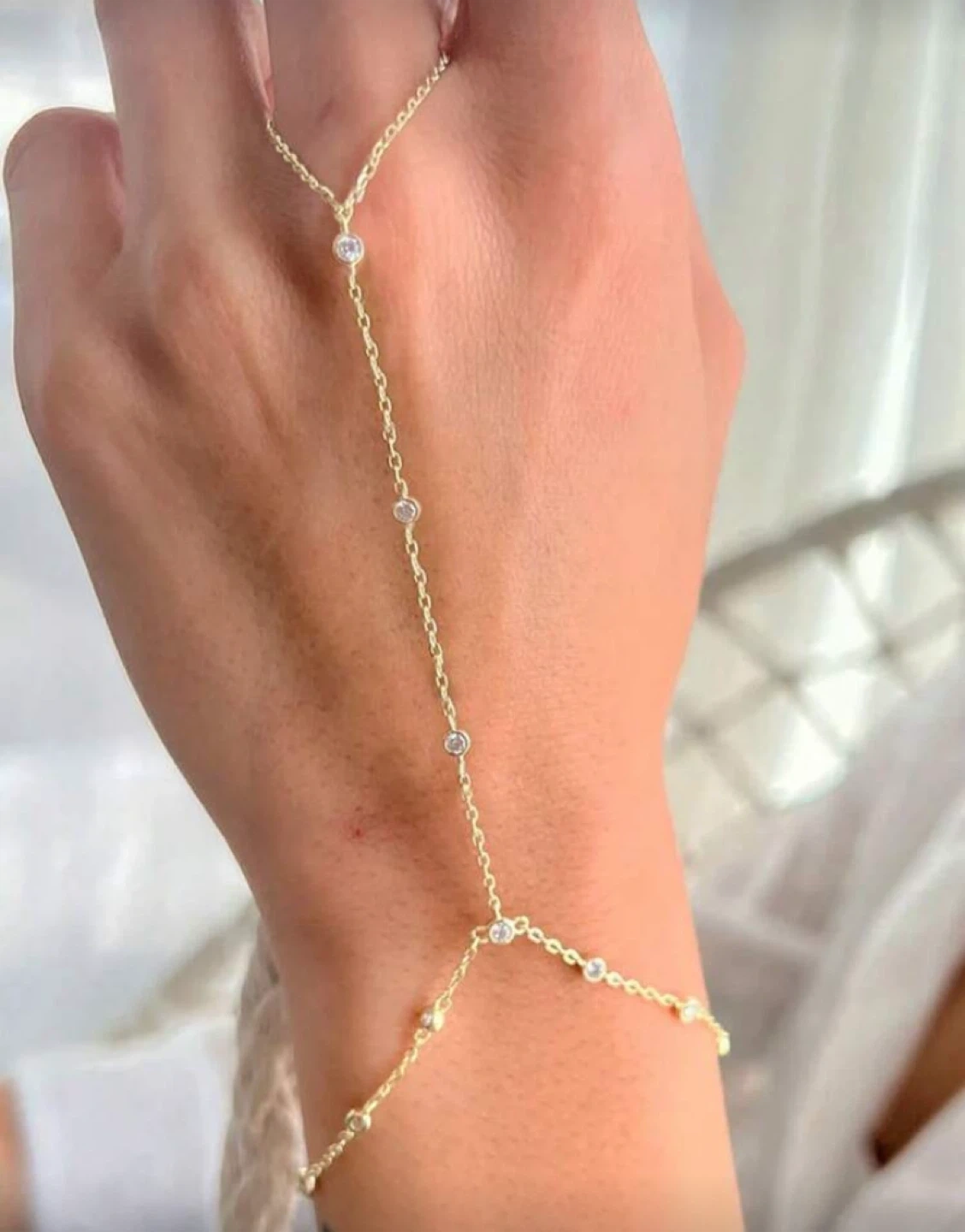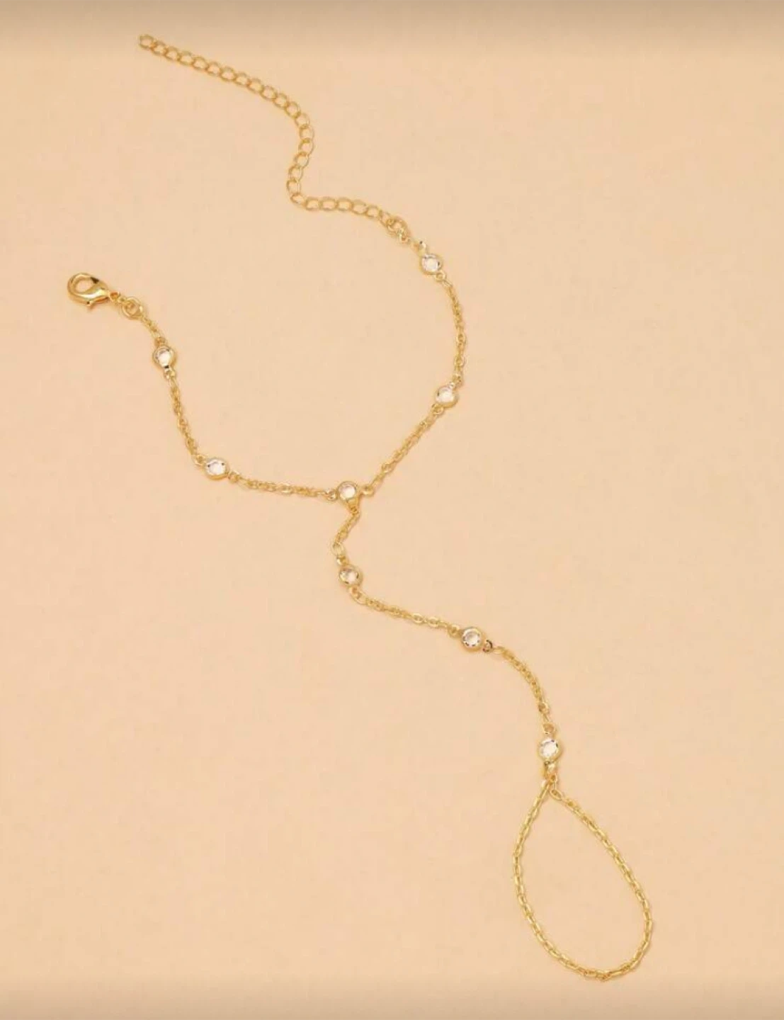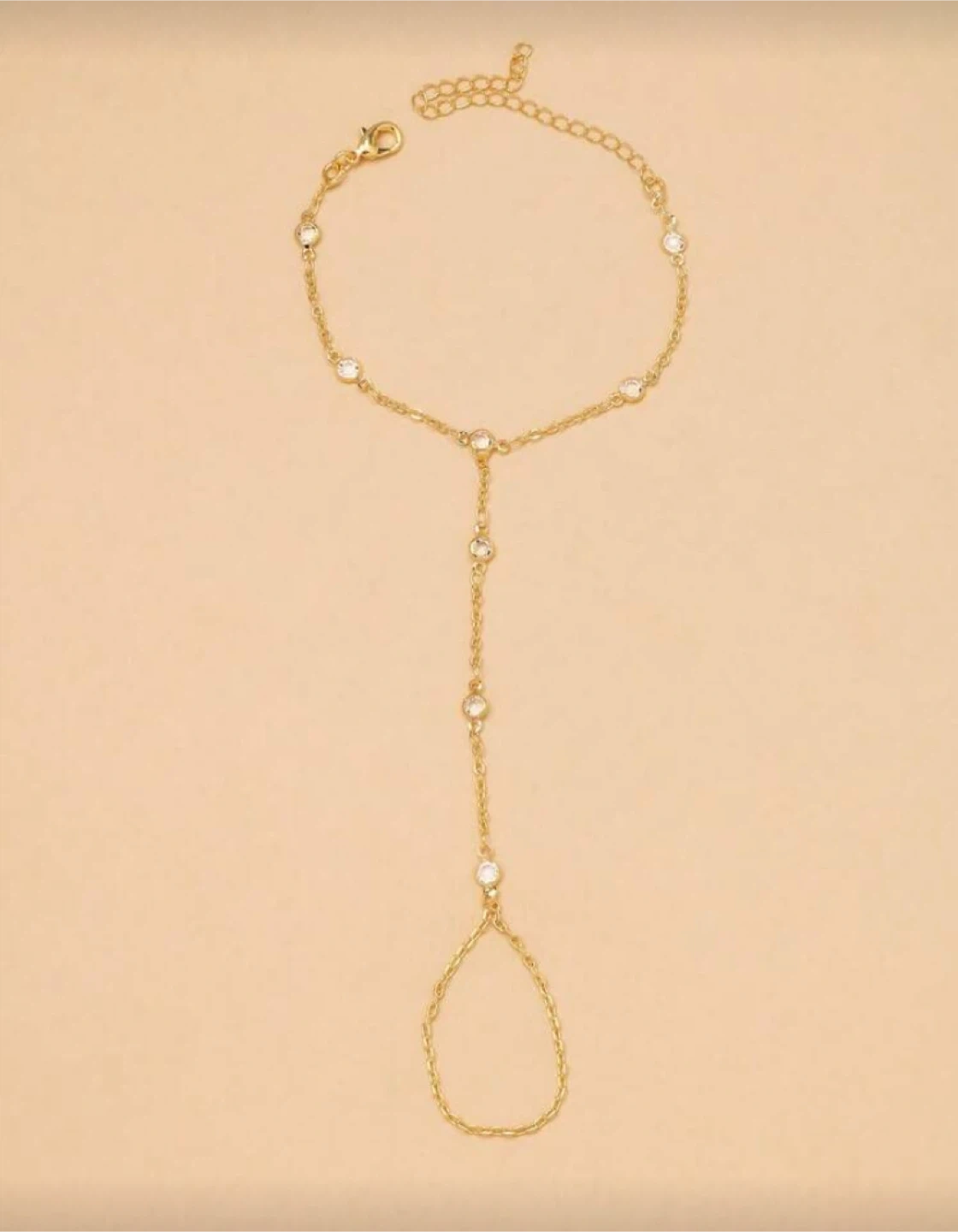 This is a gold-tone barefoot sandal, adorned with small beads. It measures 16cm + 8cm around the ankle and 13.5cm in length. Perfect for adding a touch of sparkle to your summer look!
