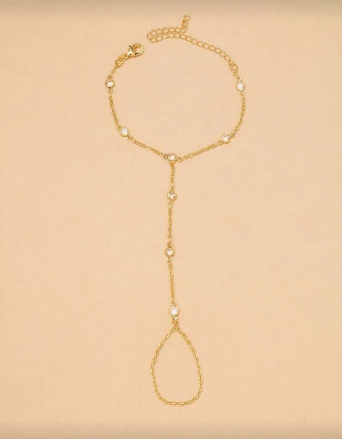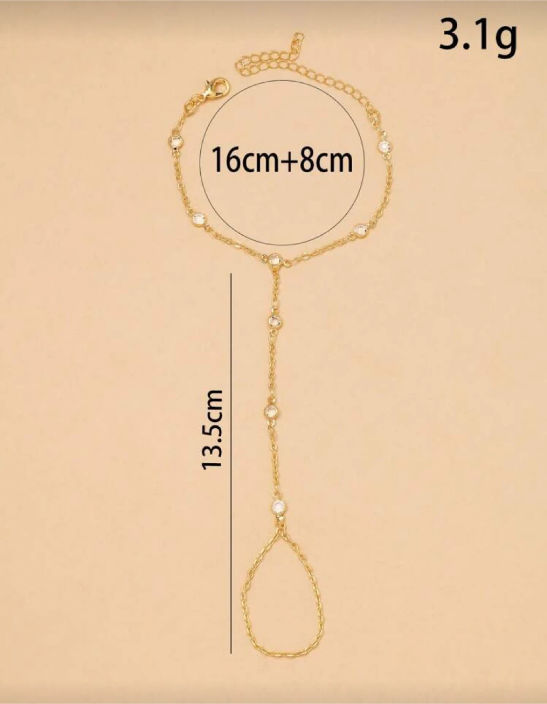 This is a gold-tone barefoot sandal, adorned with small beads. It measures 16cm + 8cm around the ankle and 13.5cm in length. Perfect for adding a touch of sparkle to your summer look!