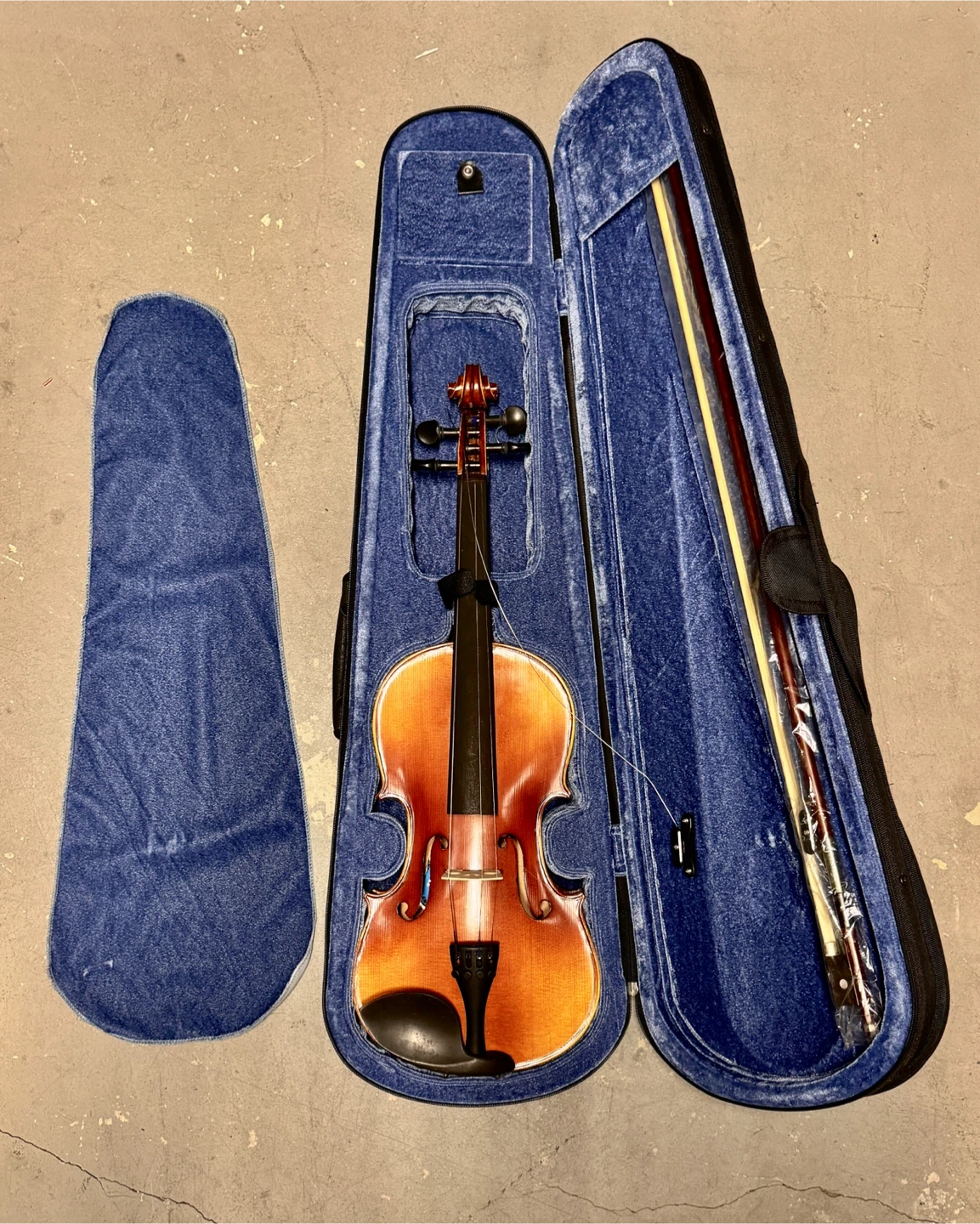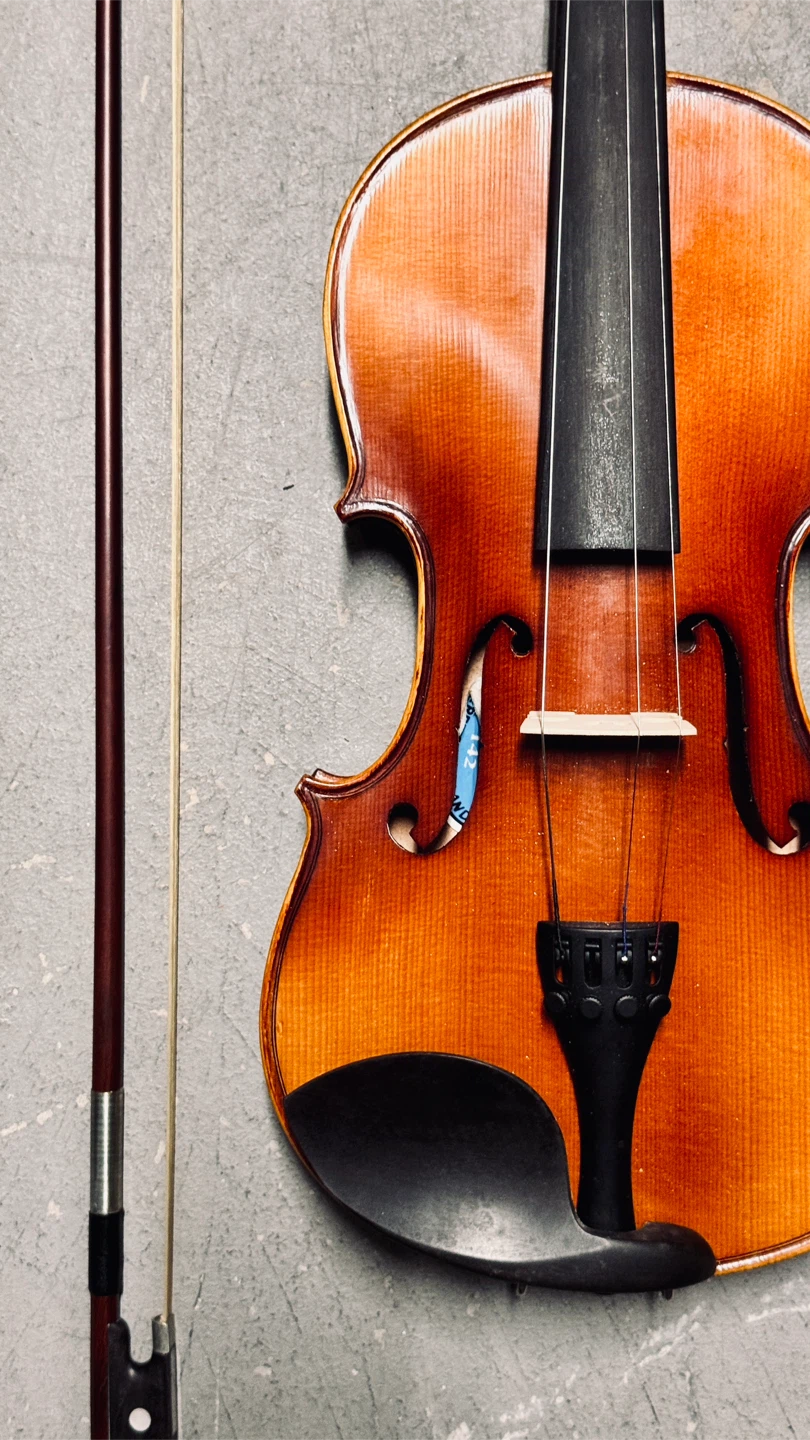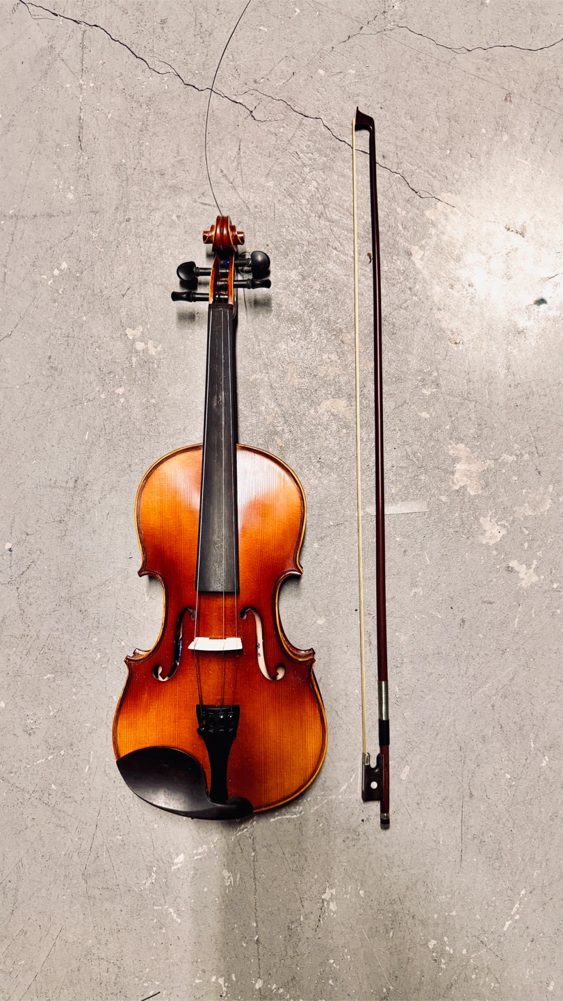 Selling a violin that comes with a case and bow. It's in good condition and ready for a new musician. The case is included for easy transport and storage.