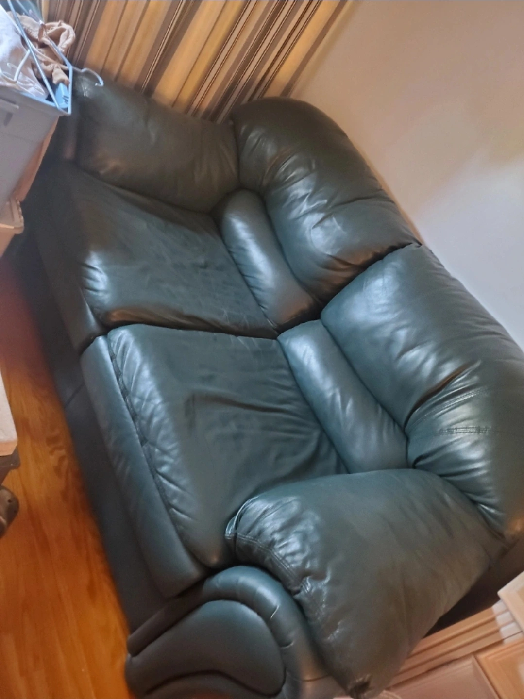 Selling a comfy leather loveseat in a nice green colour. It's in good condition and would be great for a living room or den. pick up only.