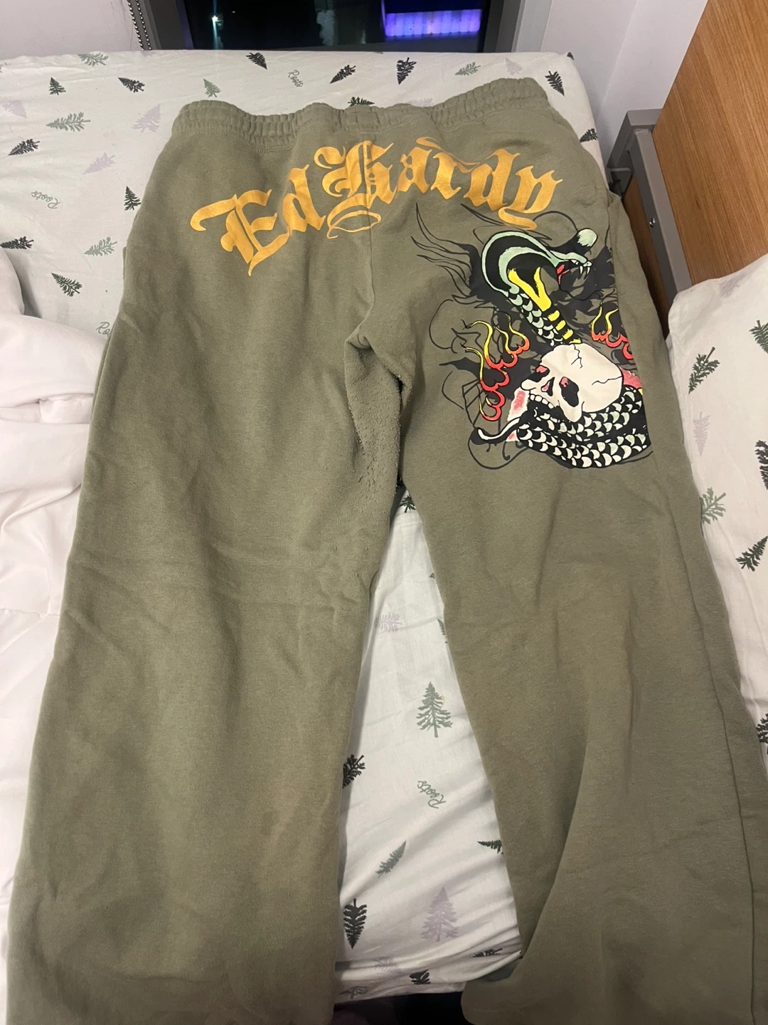 Buy & SellEd Hardy Sweatpants Size L - Olive GreenEd Hardy Sweatpants Size L - Olive Green$35These olive green sweatpants are from Ed Hardy. They feature a graphic design on the back and front. Size is L.ConditionLike newSizeLBrandEd HardyWHERE TO MEETCheck LocationView MapSELLERverifiedAnnaDowntown Toronto974 reviews0 chats·2 favorites·14 viewsSEND CHAT TO SELLERHi Anna! I’m interested in your listing.Hi Anna! I’m interested in your listing.Get the Karrot app to chatSign In to chat