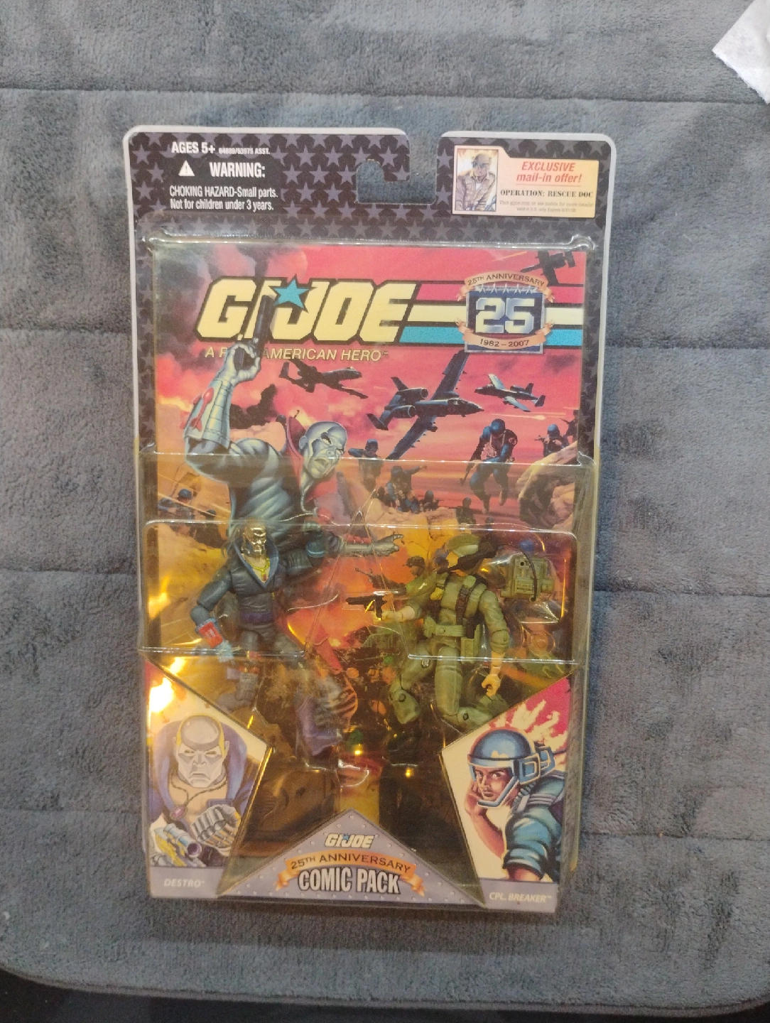 Selling a GI Joe 25th Anniversary Comic Pack featuring Destro Attacks! This pack celebrates 25 years of GI Joe comics. It includes original cover artwork from 1984 and a tribute cover from 2008. Collect all the G.I. Joe comic packs!