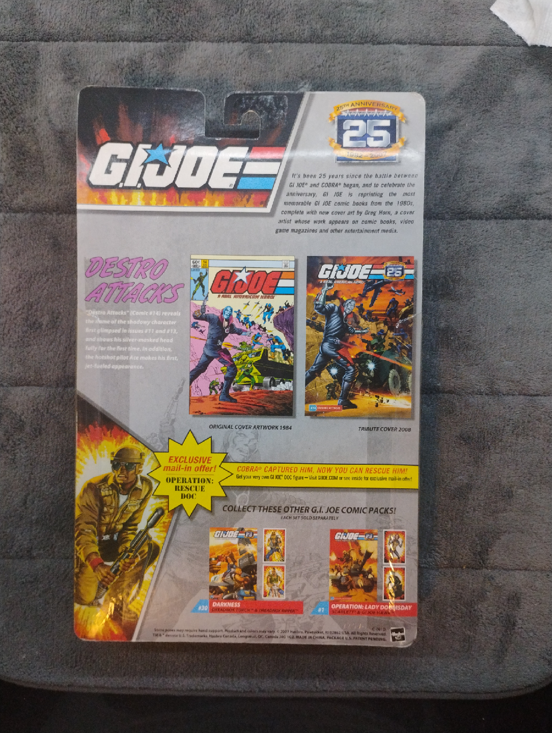 Selling a GI Joe 25th Anniversary Comic Pack featuring Destro Attacks! This pack celebrates 25 years of GI Joe comics. It includes original cover artwork from 1984 and a tribute cover from 2008. Collect all the G.I. Joe comic packs!