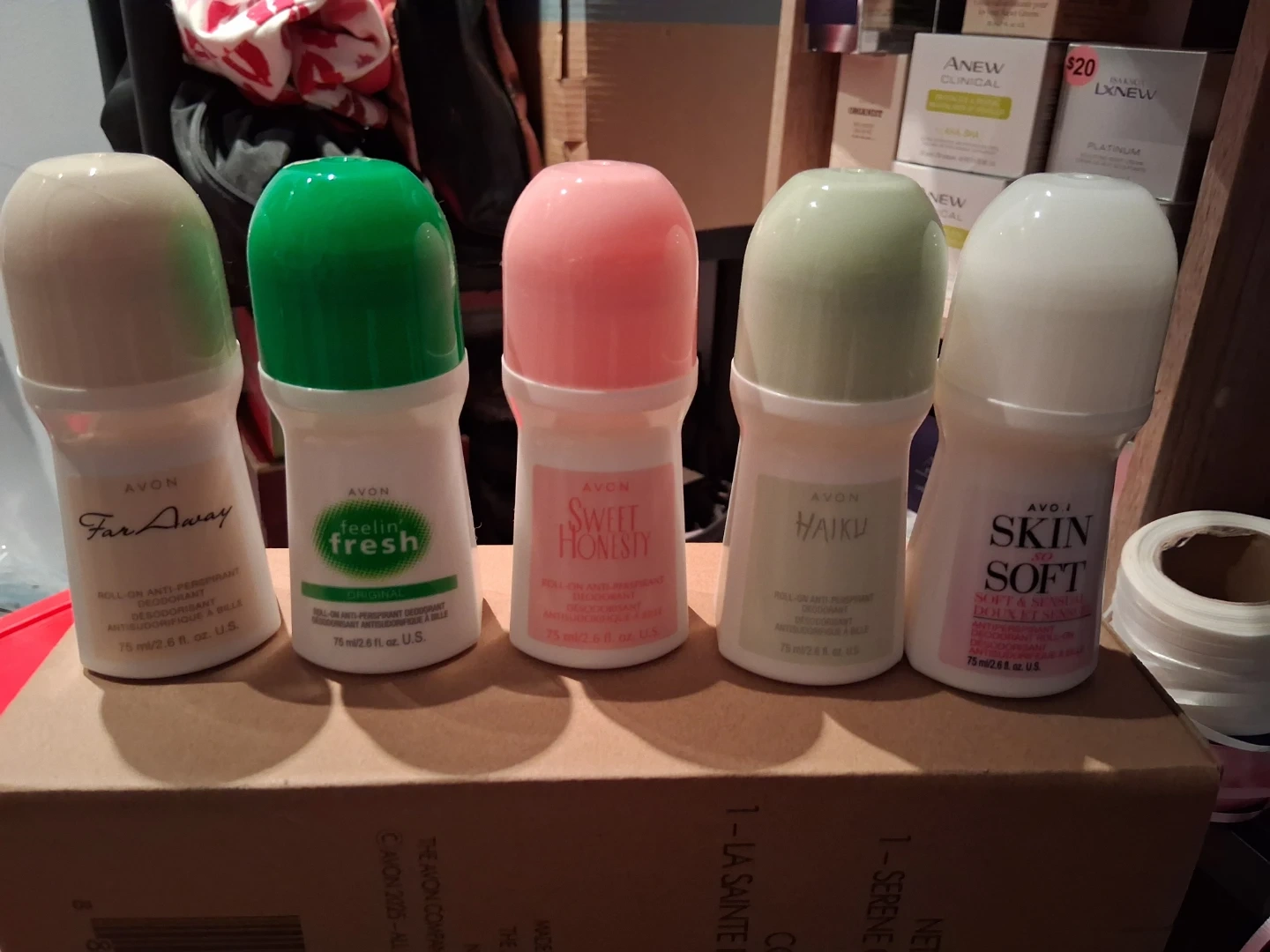 Selling a lot of Avon roll-on anti-perspirant deodorants. All are 75 ml/2.6 fl oz. U.S. Scents include Far Away, Feeling Fresh, Sweet Honesty, Haiku, Skin Soft, Wild Country, Mesmerize, Black Suede, On Duty 24 Hours/Heures Original, Timeless, On Duty 24 Hours/Heures Sport, and Imari $7 for 2. Cross posting. Night magic is sold out. Pick up near Williams and Main