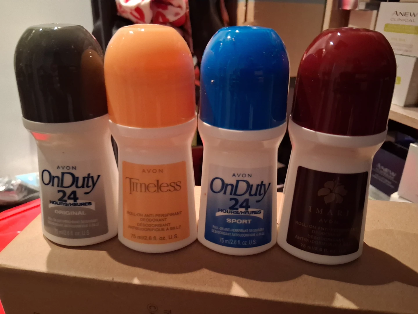 Selling a lot of Avon roll-on anti-perspirant deodorants. All are 75 ml/2.6 fl oz. U.S. Scents include Far Away, Feeling Fresh, Sweet Honesty, Haiku, Skin Soft, Wild Country, Mesmerize, Black Suede, On Duty 24 Hours/Heures Original, Timeless, On Duty 24 Hours/Heures Sport, and Imari $7 for 2. Cross posting. Night magic is sold out. Pick up near Williams and Main