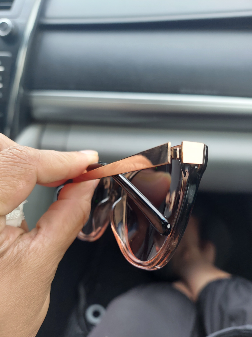 Selling a pair of sunglasses with a stylish black and peach gradient frame. They're in great condition and ready for sunny days!