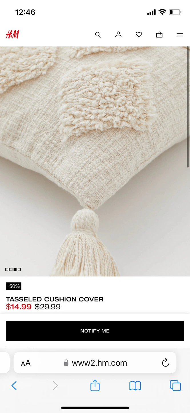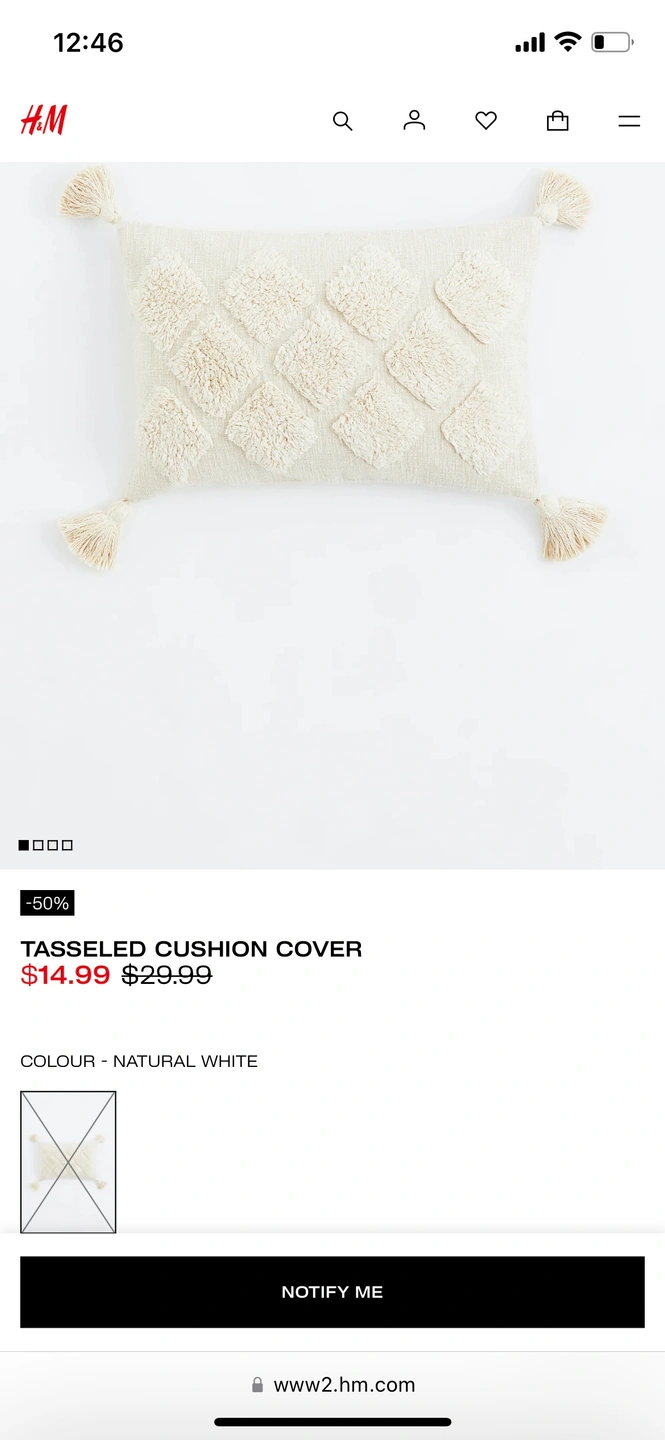 I couldn’t find the listing for the pillows, but the average price on H&M website for similar items are $15 + tax. You can check the listing for a slightly bigger size here: https://www2.hm.com/en_ca/productpage.0184042001.html