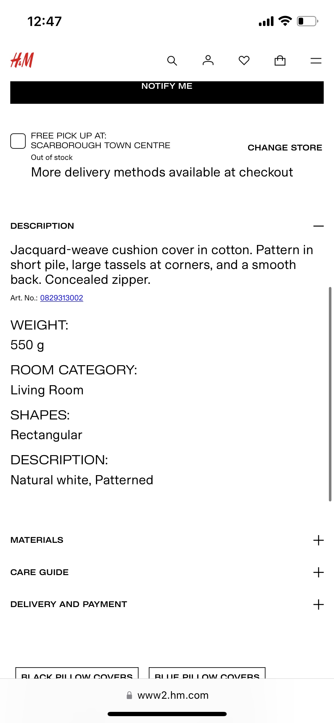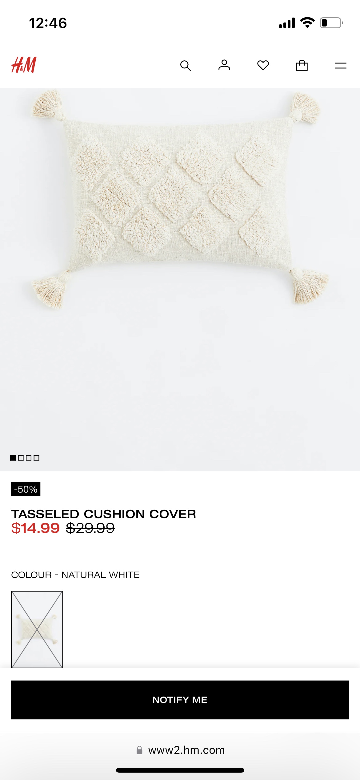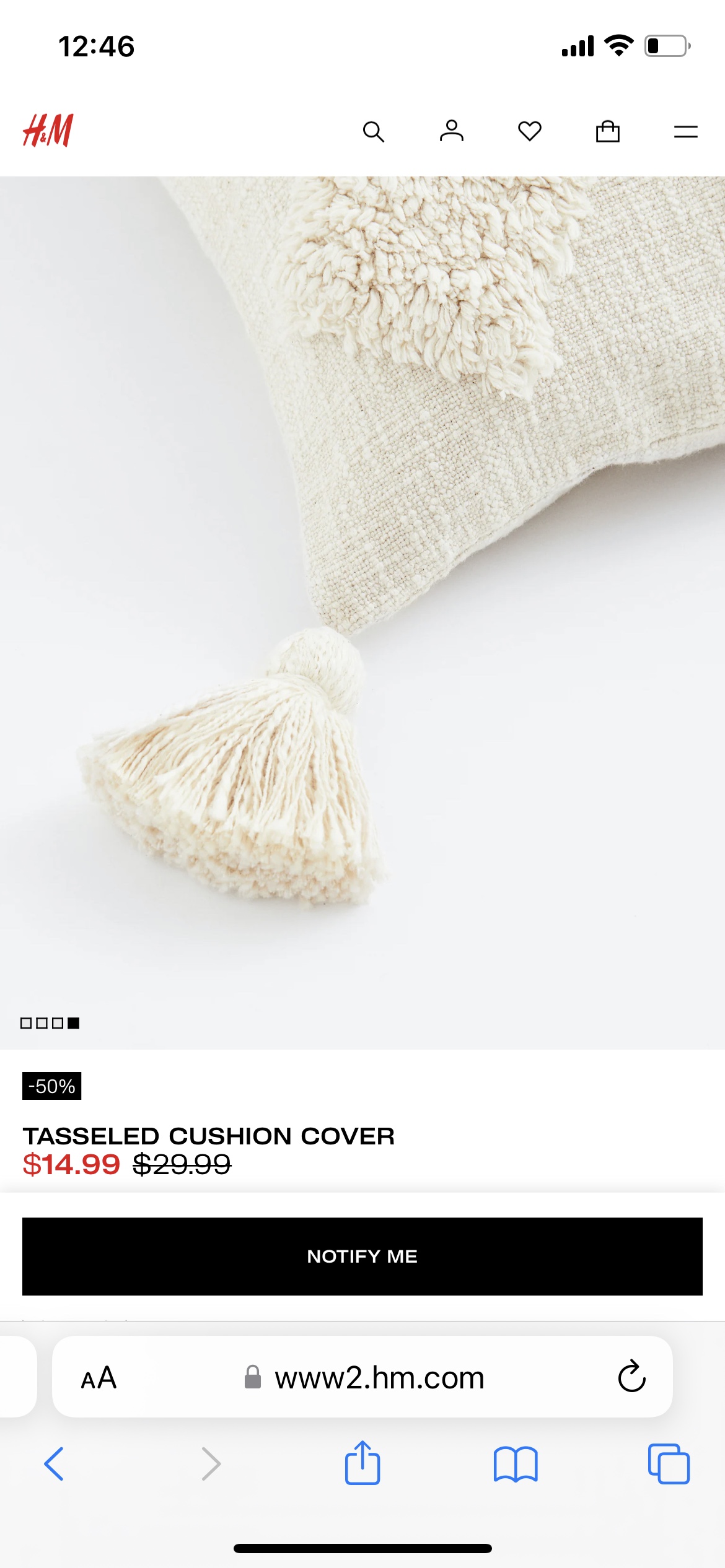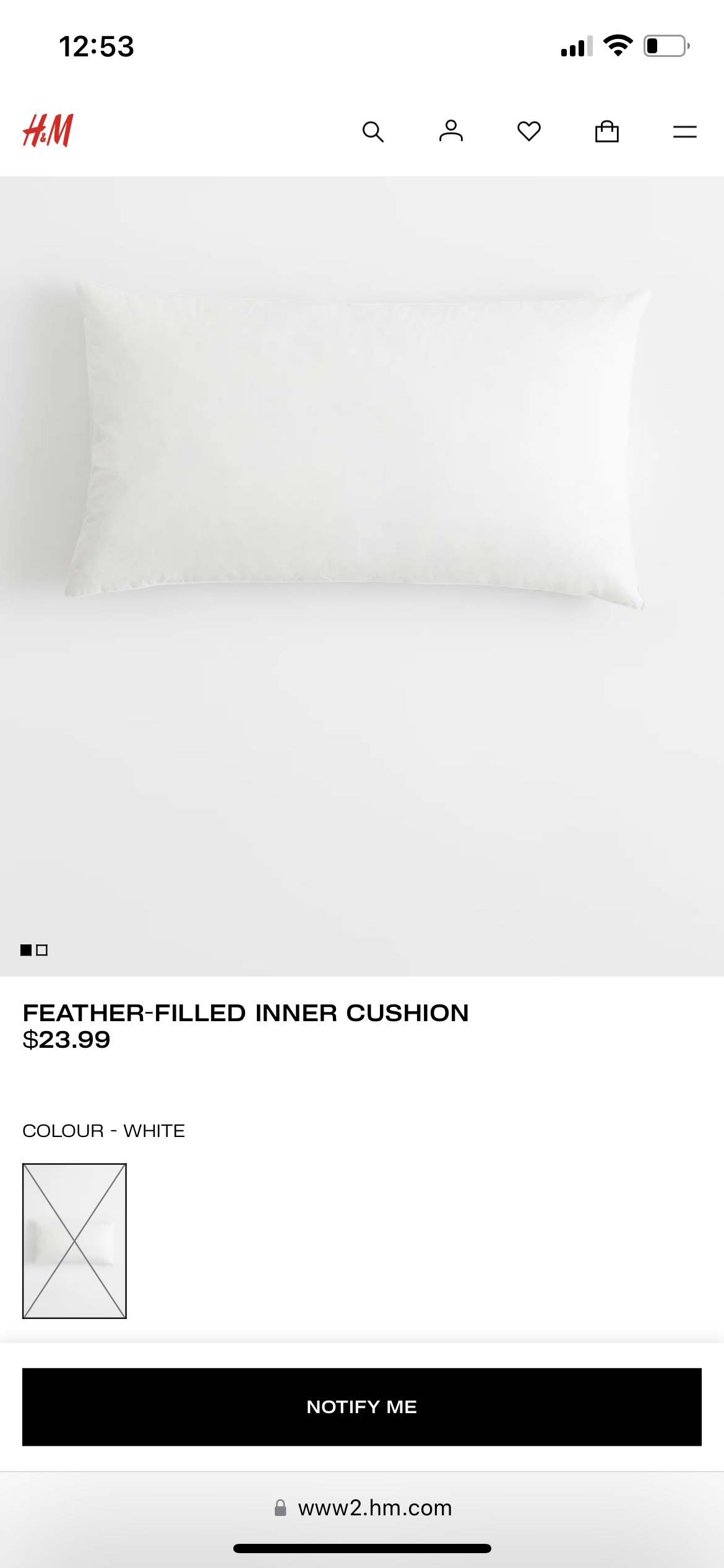 I couldn’t find the listing for the pillows, but the average price on H&M website for similar items are $15 + tax. You can check the listing for a slightly bigger size here: https://www2.hm.com/en_ca/productpage.0184042001.html