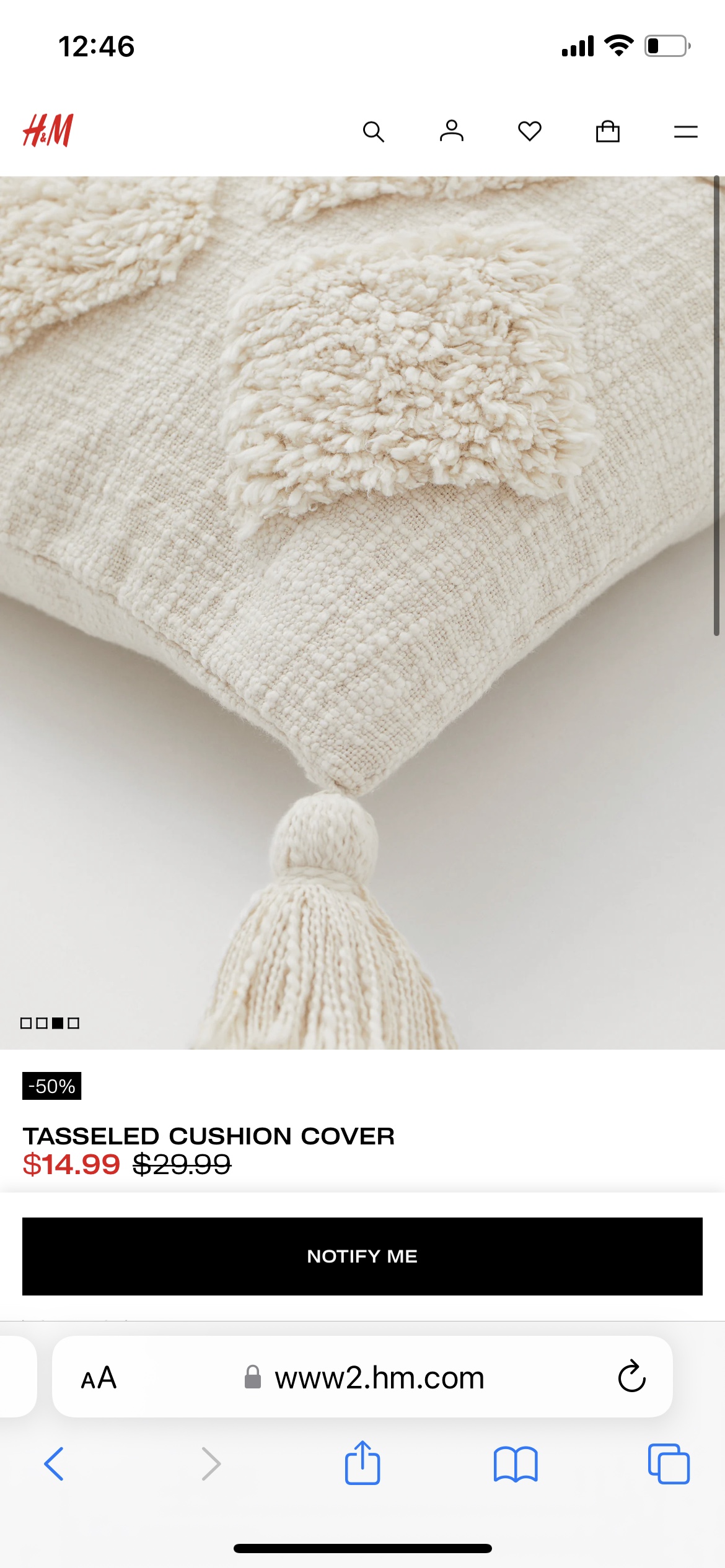 H&M Tassel Cushion Cover with feather-filled inner cusion