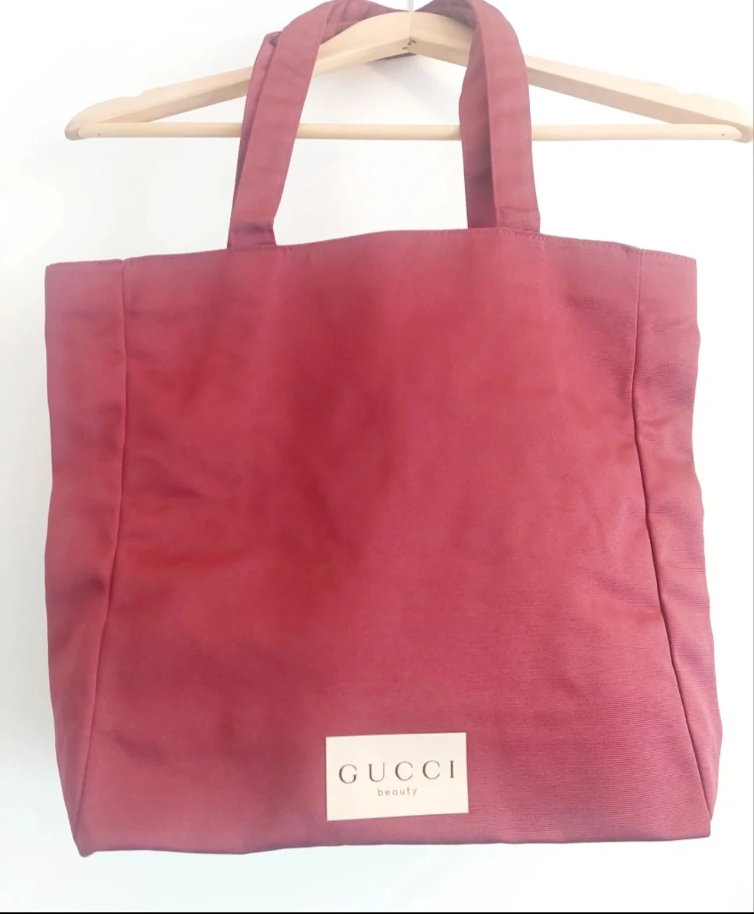 New Gucci Tote Bag in Gucci's signature Rosso Ancora shade of a rich burgundy red with a cream coloured interior. Gucci Beauty logo on the front as pictured. Zoom into pics for additional details.
