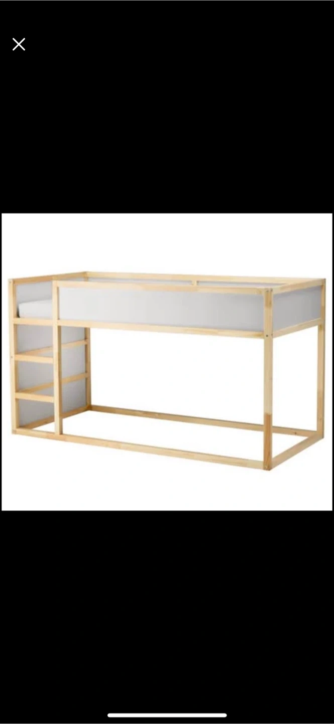 Selling an IKEA KURA bed frame with a slatted base! This bed is great for kids and can be flipped to be either a low or high bed. The dimensions are 116 cm (45 3/4") high, 105 cm (41 3/8") wide, and 199 cm (78 3/8") long. It's in good condition and ready for a new home.