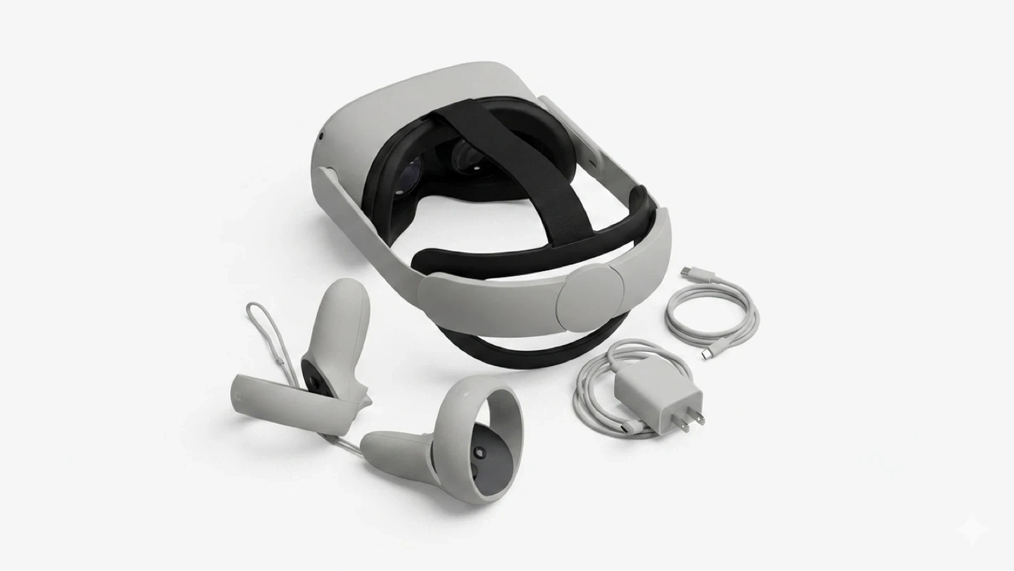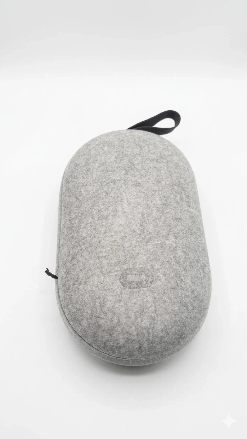 This is an Oculus Quest 2 virtual reality headset. It comes with two controllers, charging cable, and power adapter. Also includes a grey felt carrying case for protection. Great for gaming and immersive experiences! Barely used!